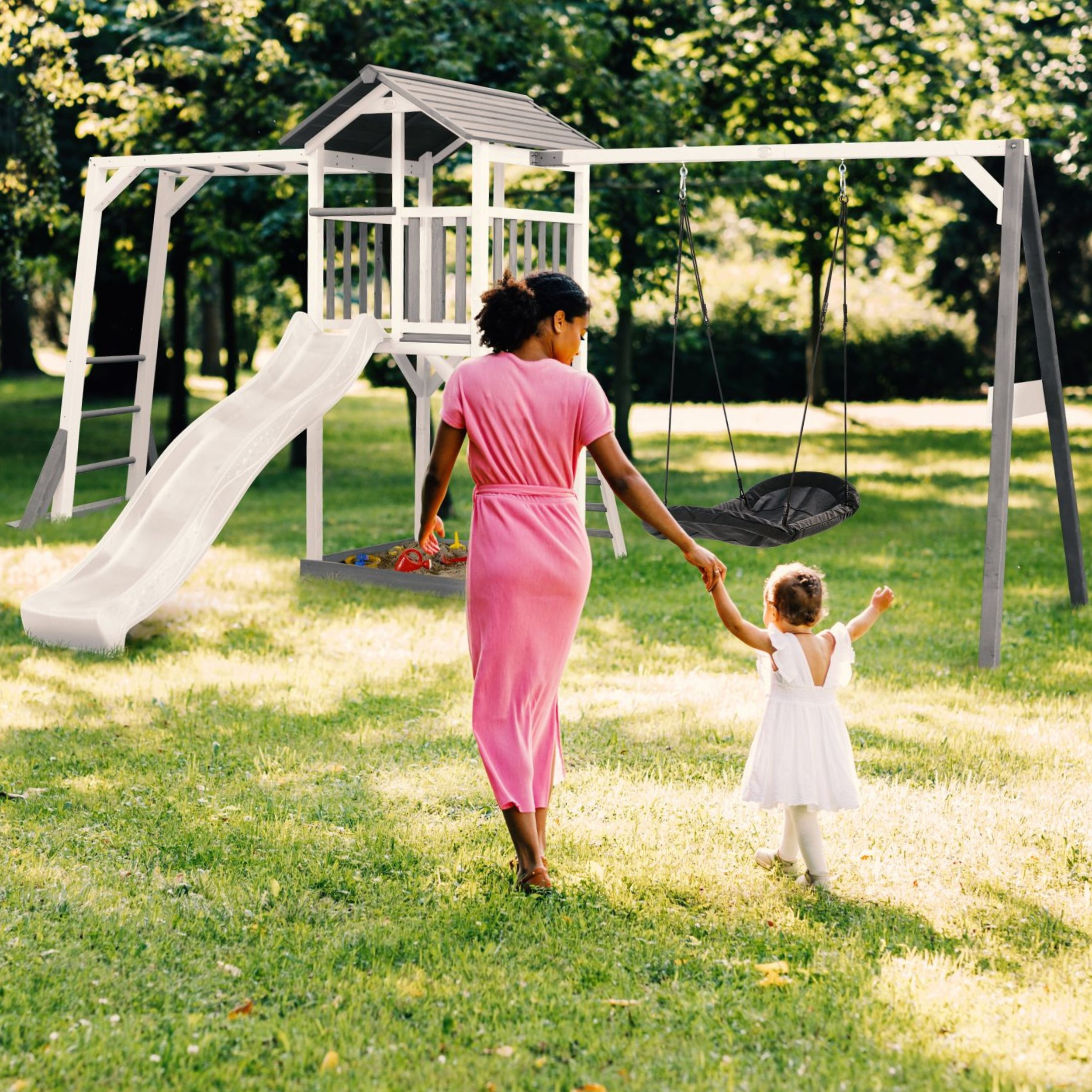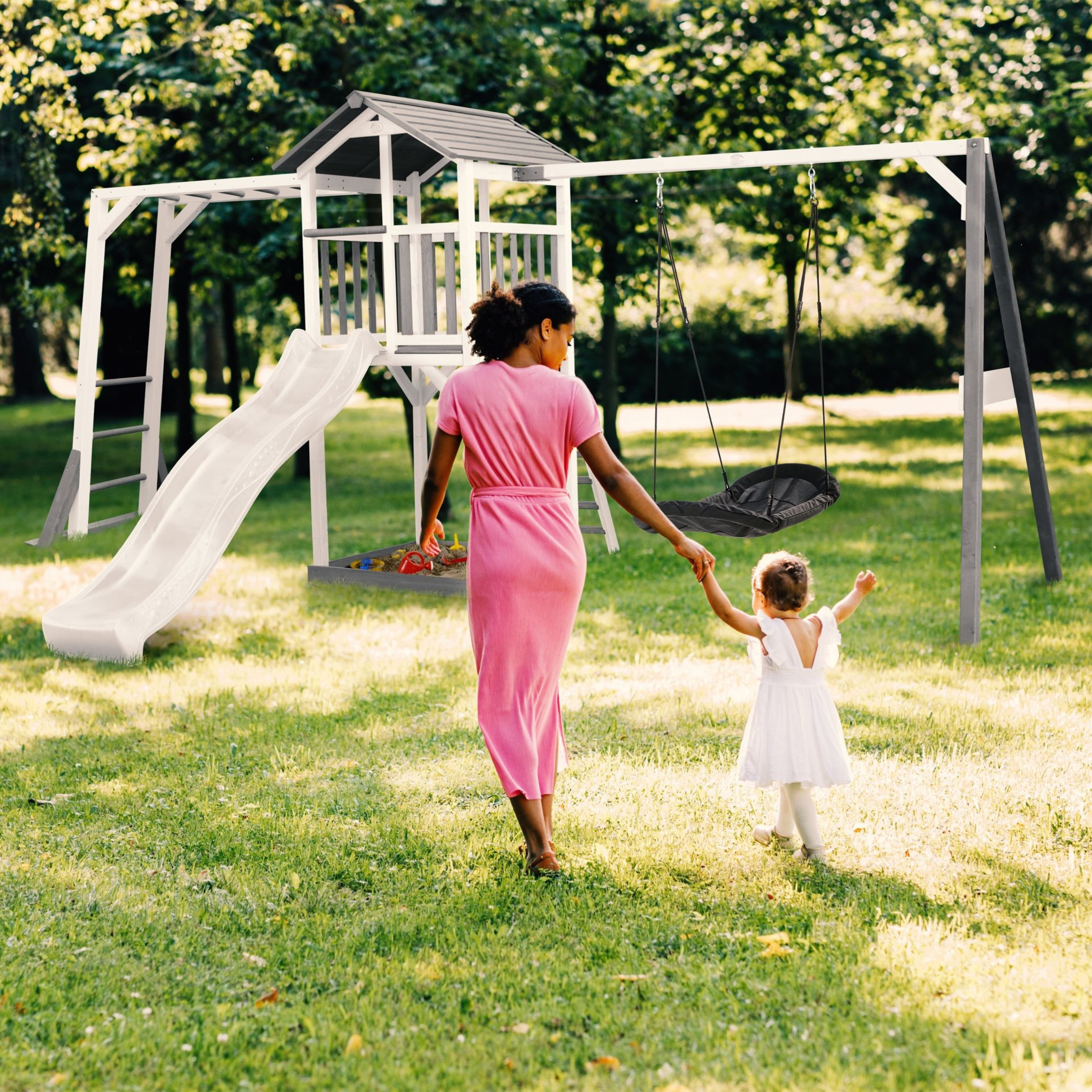 AXI Plac Zabaw Drewniany Wieża z Huśtawką Drabinki Wspinaczkowe Zjeżdżalnia XXL