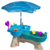 Solidna i trwała konstrukcja zapewnia bezpieczną zabawę na świeżym powietrzu. Do stolika dołączony jest parasol, który można zamontować aby ochroni dzieci przed słońcem.