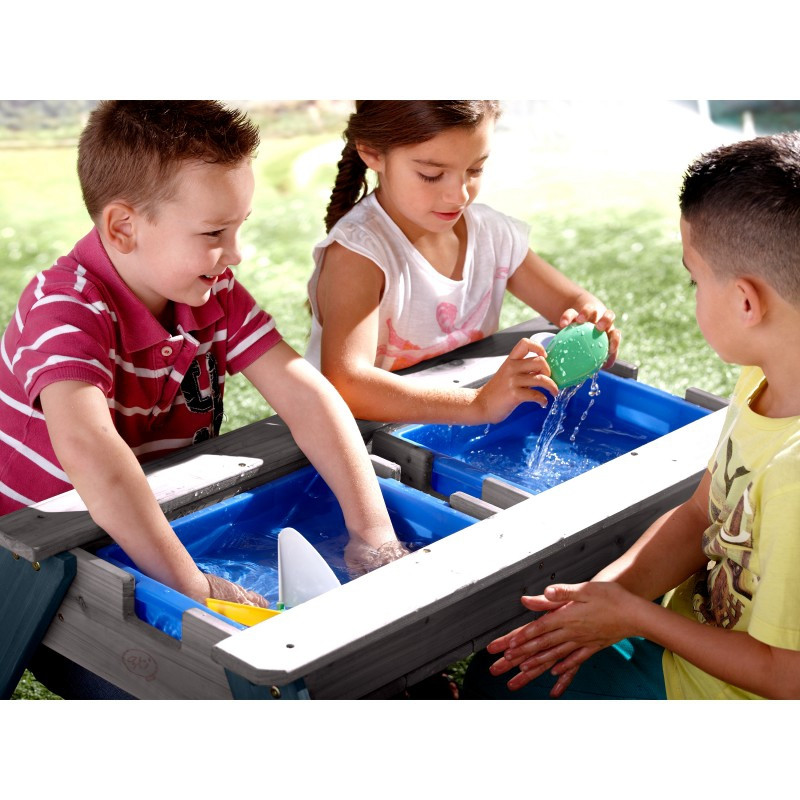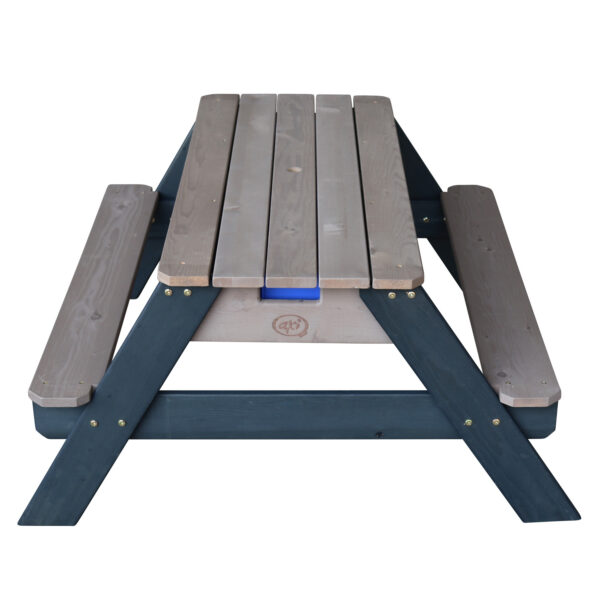 Stolik piknikowy Nick dla dzieci firmy Axi sprawi Twoim pociechom wielką radość. Dzieci mają miejsce, żeby wygodnie usiąść, bawić się i malować. Maluchy będą miały wygodny kącik tylko dla siebie. A jeśli znudzi im się spokojne siedzenie, po zdjęciu blatu stolika, zestaw przeistacza się w piaskownicę lub stolik wodny. Mamy dwie komory, które przystosowane są zarówno do piasku, jak i do wody. Dzięki temu z jednej strony dzieci mogą budować zamki z piasku, a z drugiej mogą bawić się zabawkowymi łodziami. Stolik świetnie sprawdzi się w ogrodzie, na tarasie oraz balkonie.