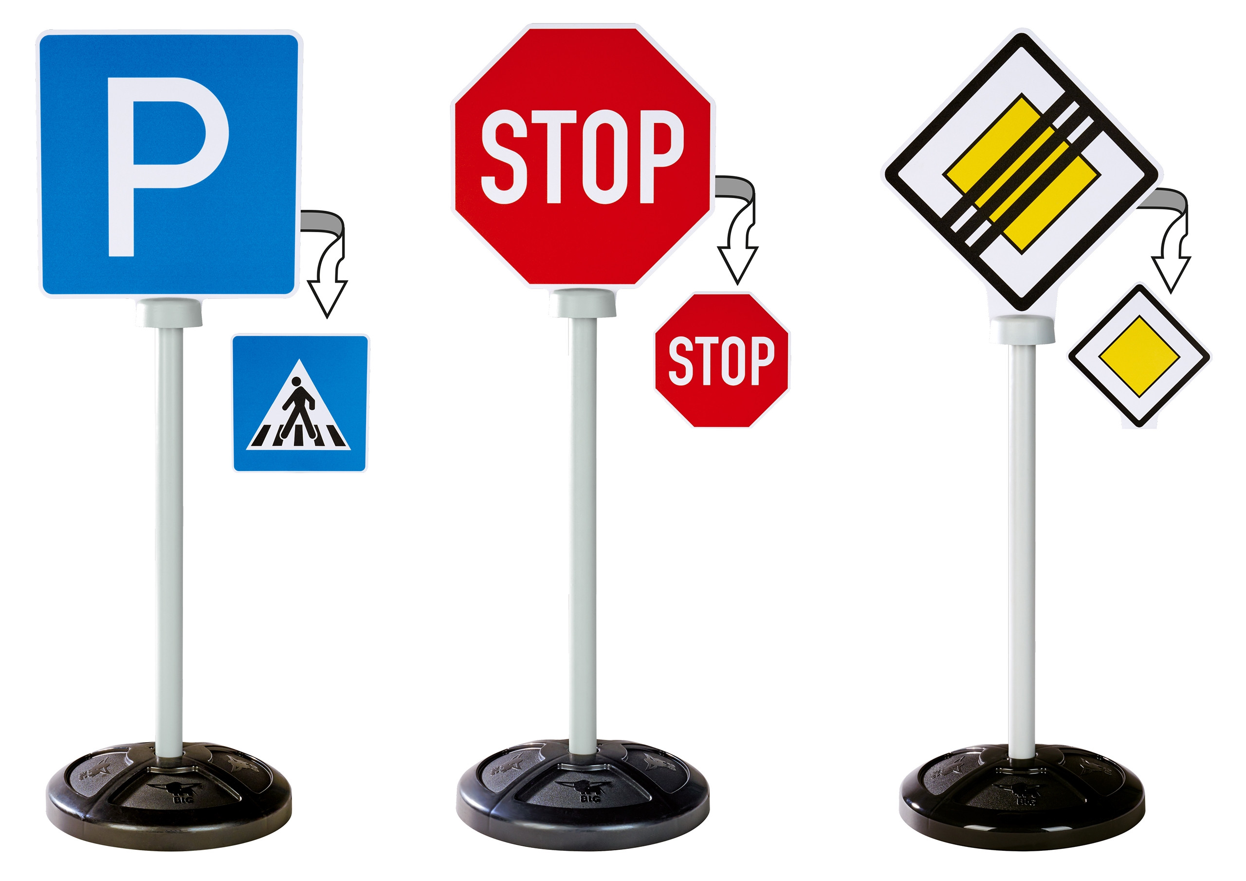 Zestaw znaków drogowych firmy BIG to doskonała pomoc edukacyjna dla dzieci już od 12 miesiąca życia. Dzięki realistycznym oznaczeniom maluchy w łatwy i przyjemny sposób poznają podstawowe zasady ruchu drogowego, rozwijając świadomość bezpieczeństwa na drodze.