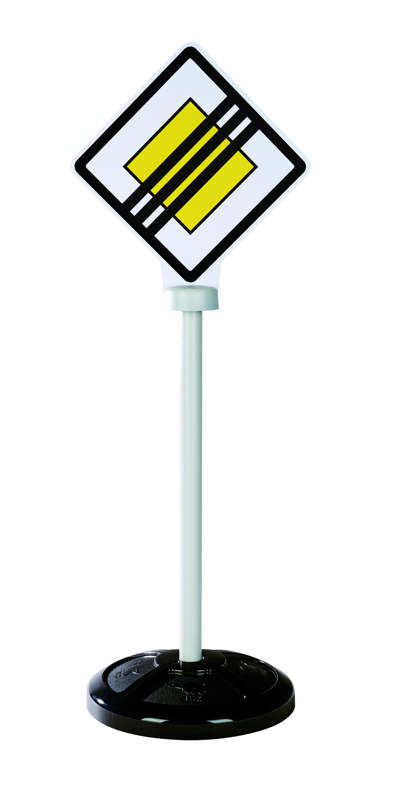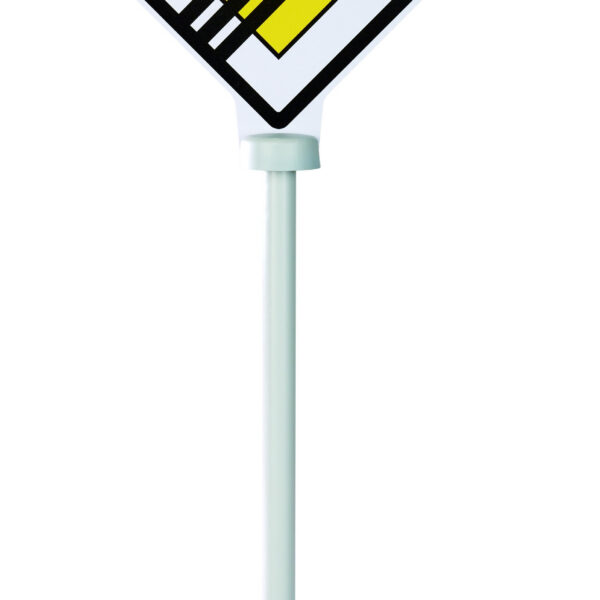 3 stabilne znaki, każdy z dwustronnym nadrukiem przedstawiającym łącznie 5 realistycznych symboli drogowych: