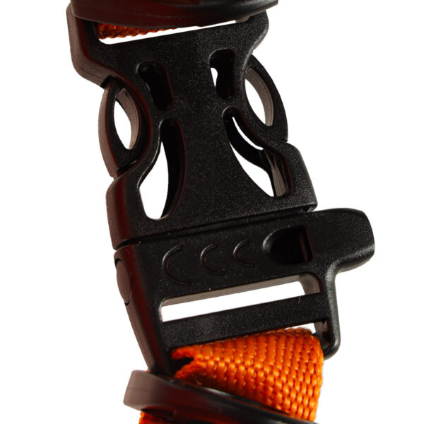 wbudowany gwizdek ratunkowy, umieszczony w klamrze, który
