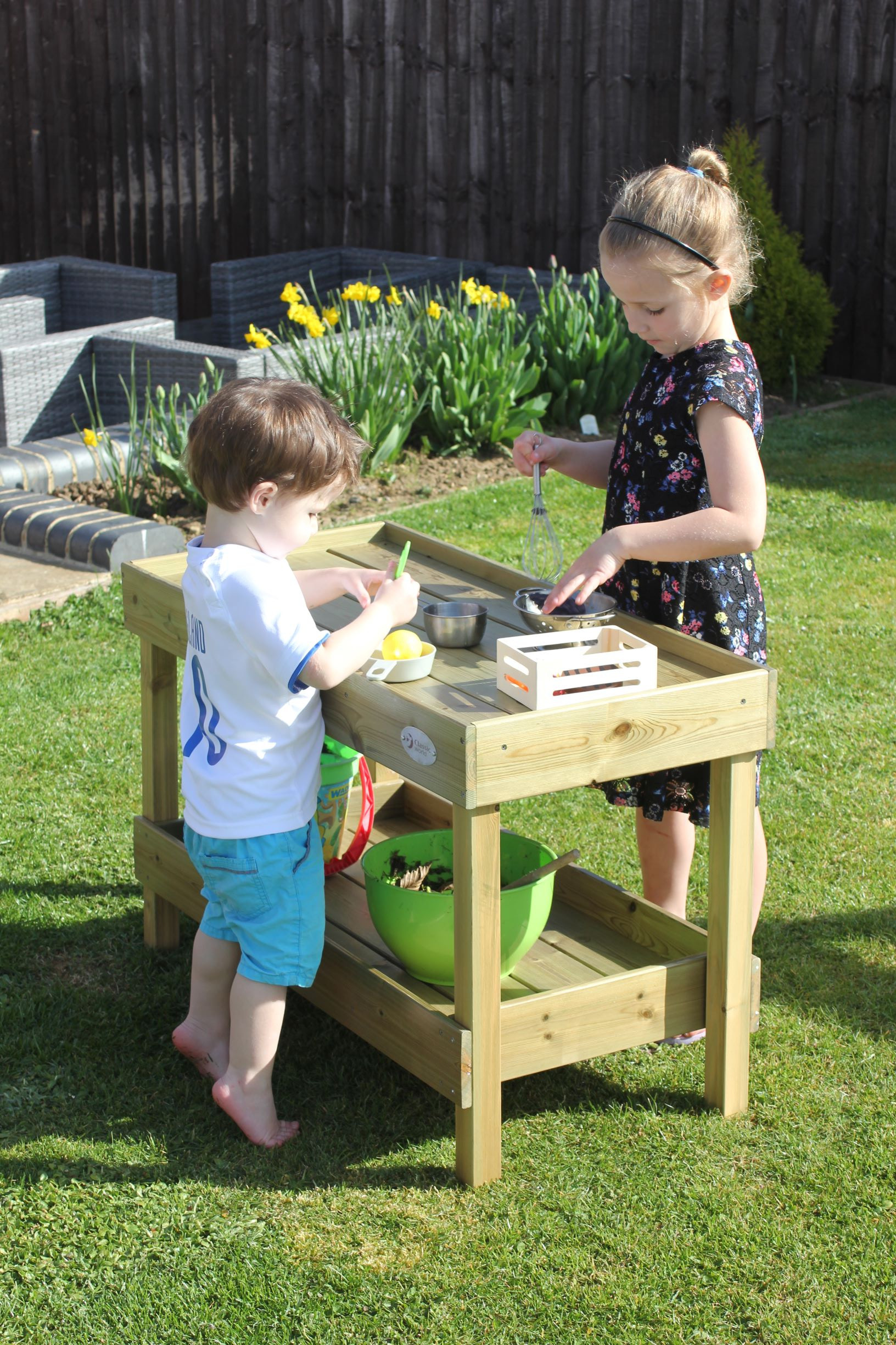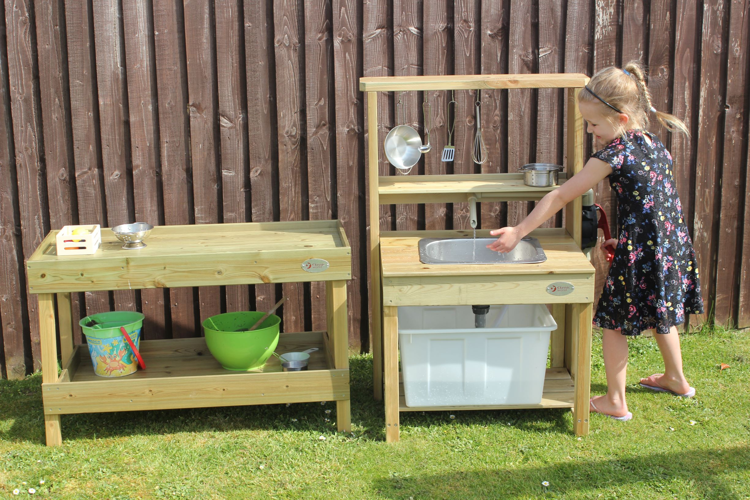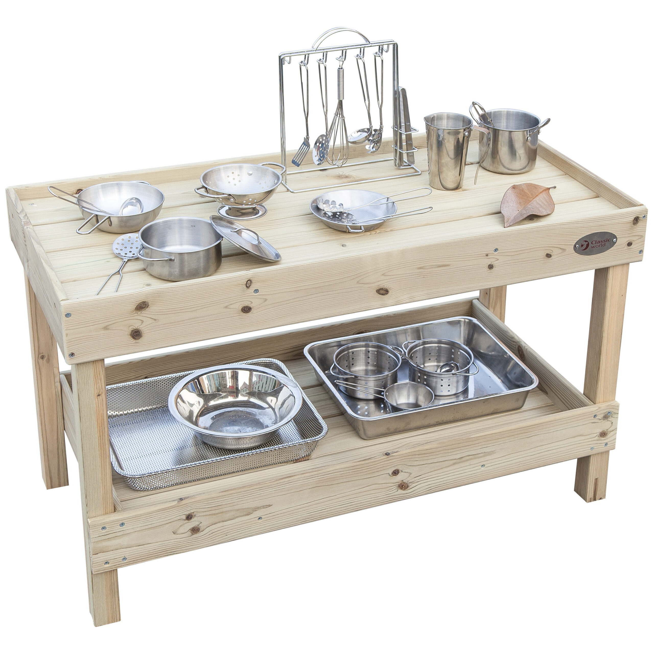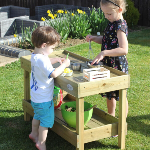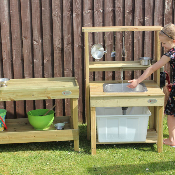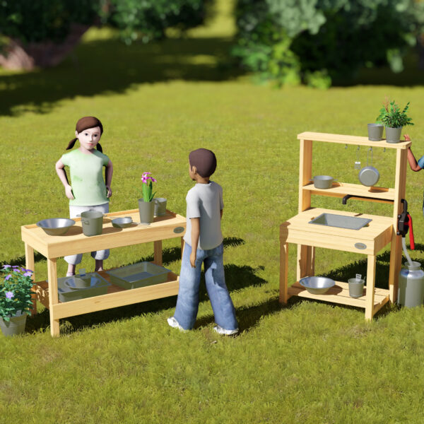 Drewniany Blat Kuchenny od marki Classic World z profesjonalnej serii EDU to doskonałe uzupełnienie każdego ogrodowego placu zabaw, przedszkola lub domowego kącika zabaw. Ten solidny mebel pełni funkcję stanowiska kuchennego oraz pojemnej szafki na akcesoria, pozwalając dzieciom na kreatywną zabawę na świeżym powietrzu. Produkt został zaprojektowany z myślą o intensywnym użytkowaniu, wykonany z wysokiej jakości drewna, co gwarantuje trwałość i odporność podczas zabawy w ogrodzie. Szafka zachęca najmłodszych do odgrywania ról, wspólnego gotowania i eksperymentowania, co w naturalny sposób wspiera rozwój kompetencji społecznych.