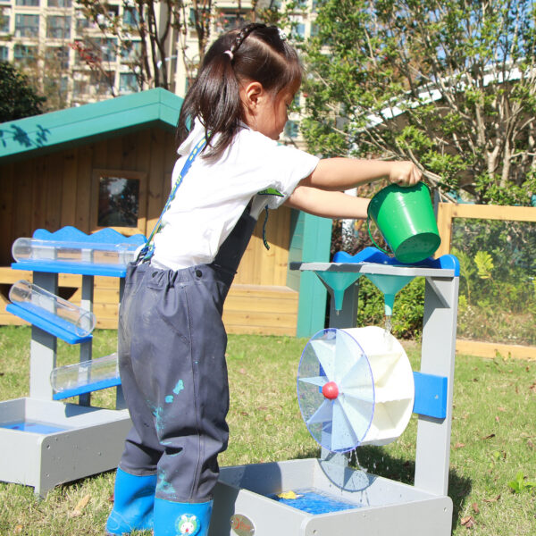 - – Zestaw doświadczalny– dziecko uczy się ciągu przyczyna- skutek, obserwuje wodę która wprawia w ruch młynek.