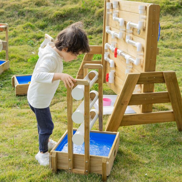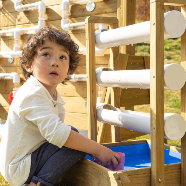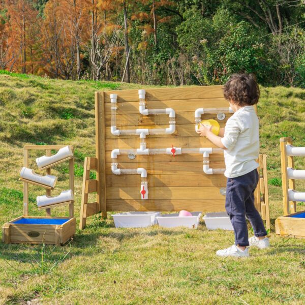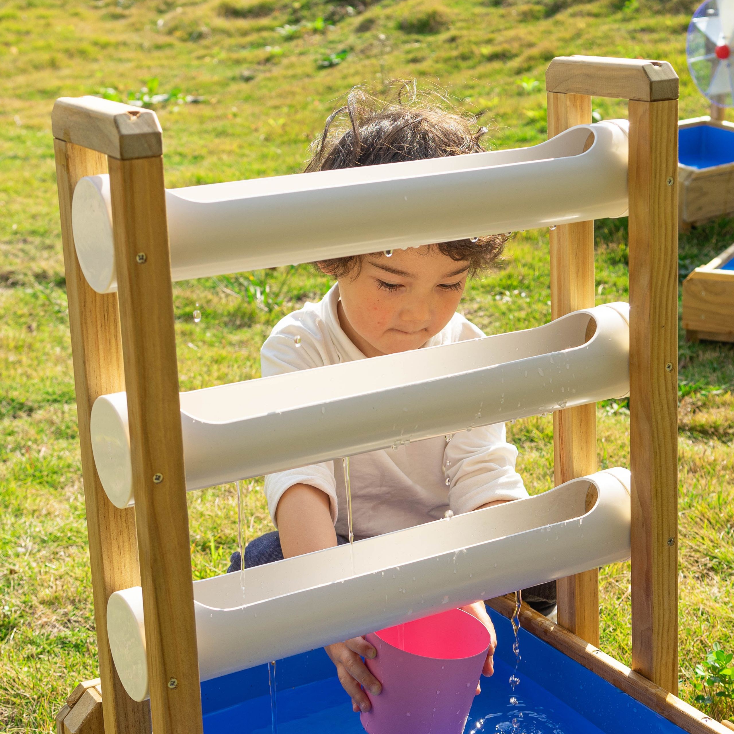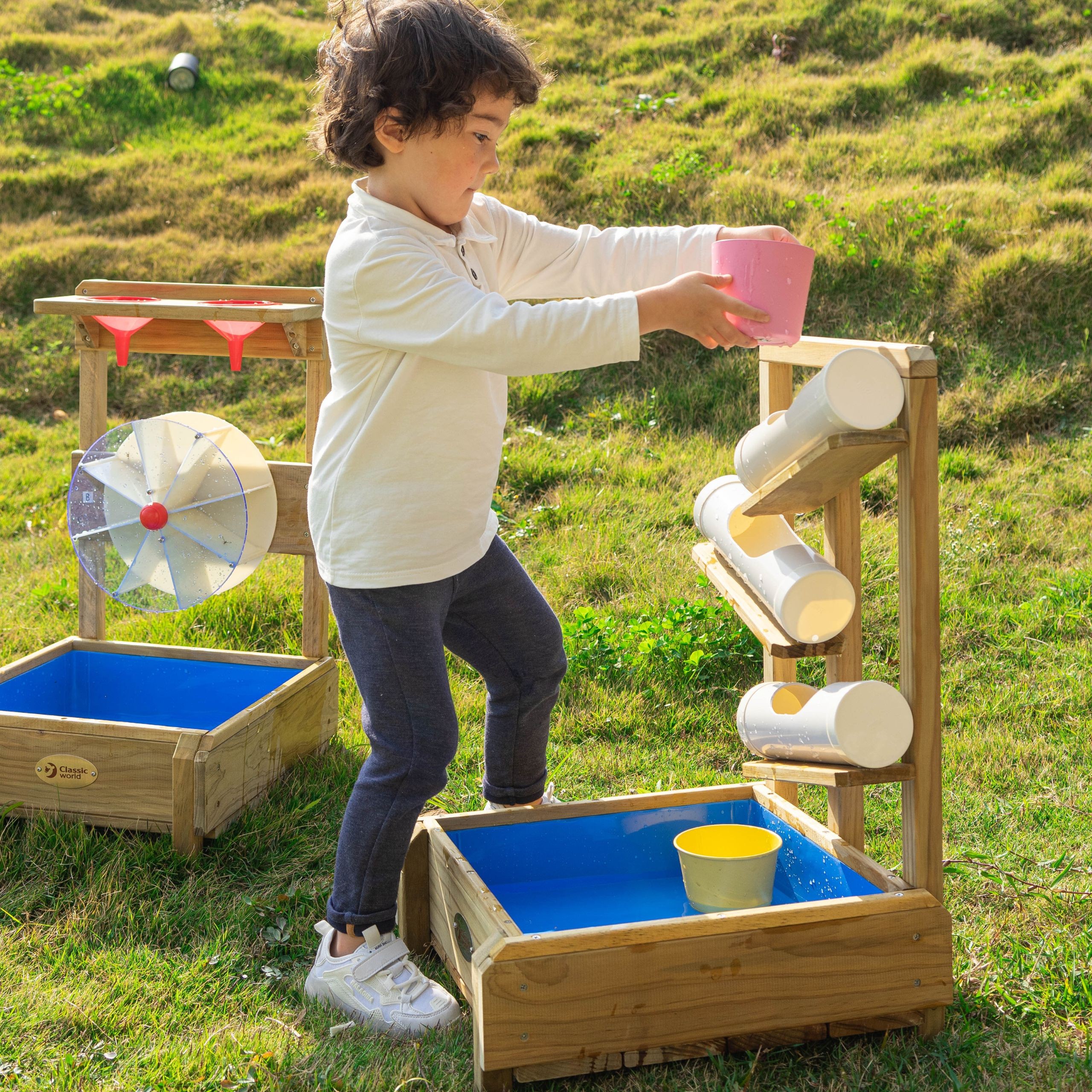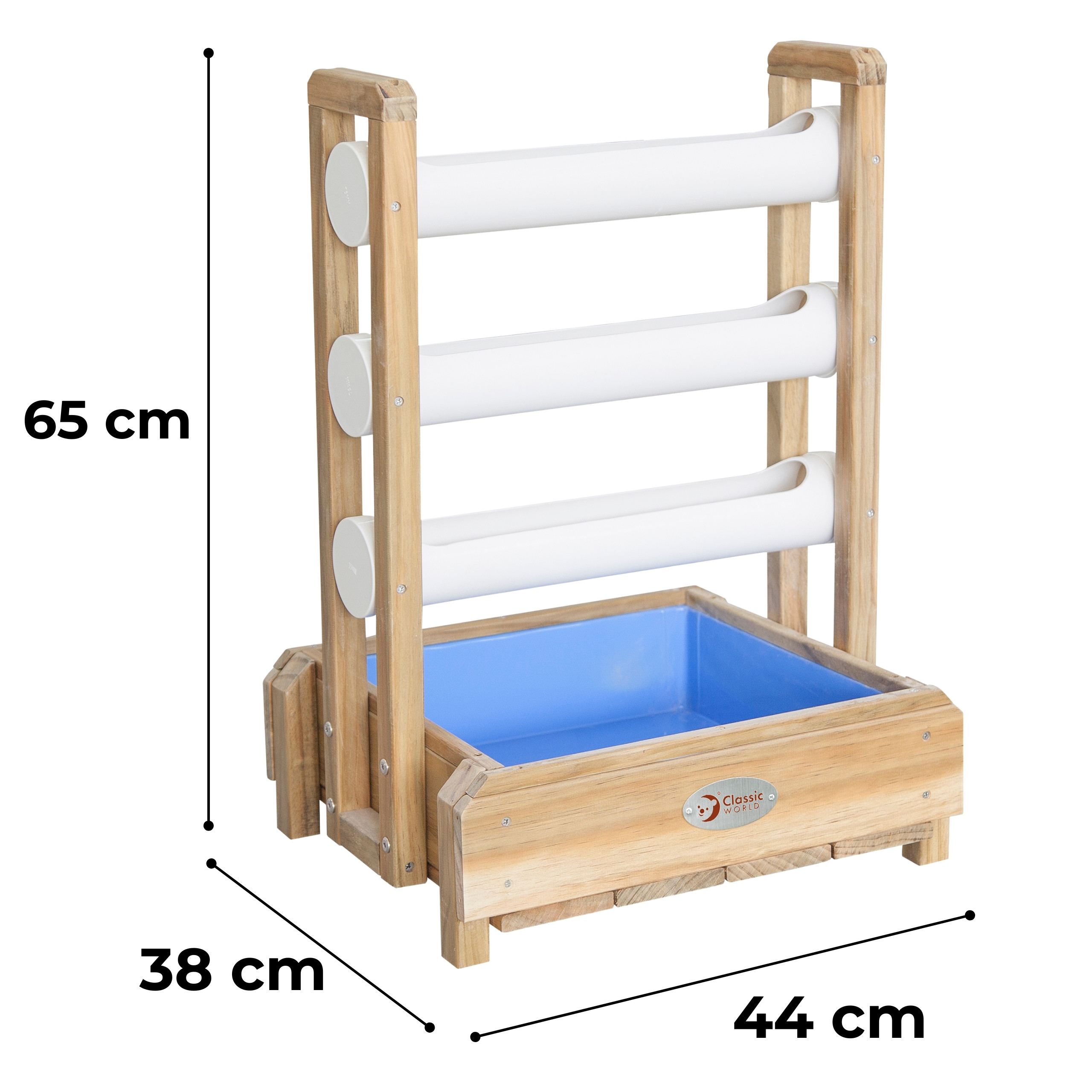 Zabawka Wodna dla dzieci od renomowanej marki Classic World. Produkt jest wyprodukowany z wysokiej jakości drewna, pomalowany nietoksycznym impregnatem, w pełni bezpiecznym dla dzieci. Po prostu napełnij rynienkę wodą i obserwuj jak spływa z jednej do drugiej tworząc mini basen. Produkt rozwija dzieciom wyobraźnię, percepcję i logiczne myślenie.