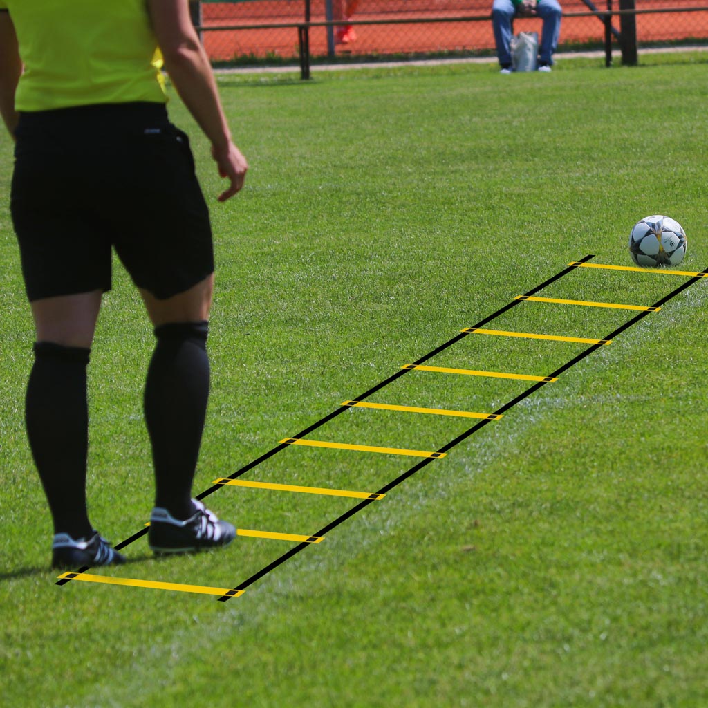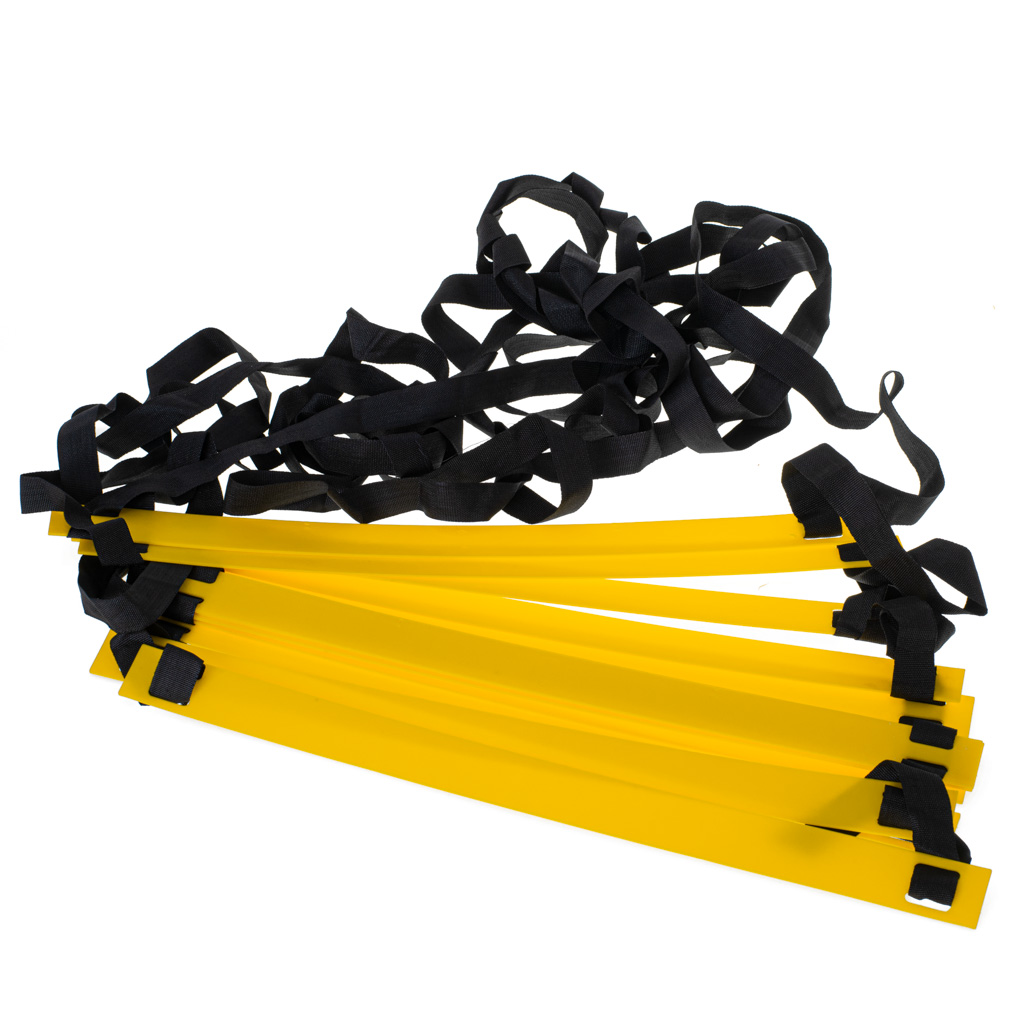 Drabinka koordynacyjna, która doskonale wpłynie na zwinność, siłę mieści nóg i ogólną kondycję ciała. Do użytku wewnętrznego i zewnętrznego. Kolor: czarno-żółty. Ilość szczebelków: 12. Tworzywo: plastik. Max. długość: 6m. Szerokość: 52cm.