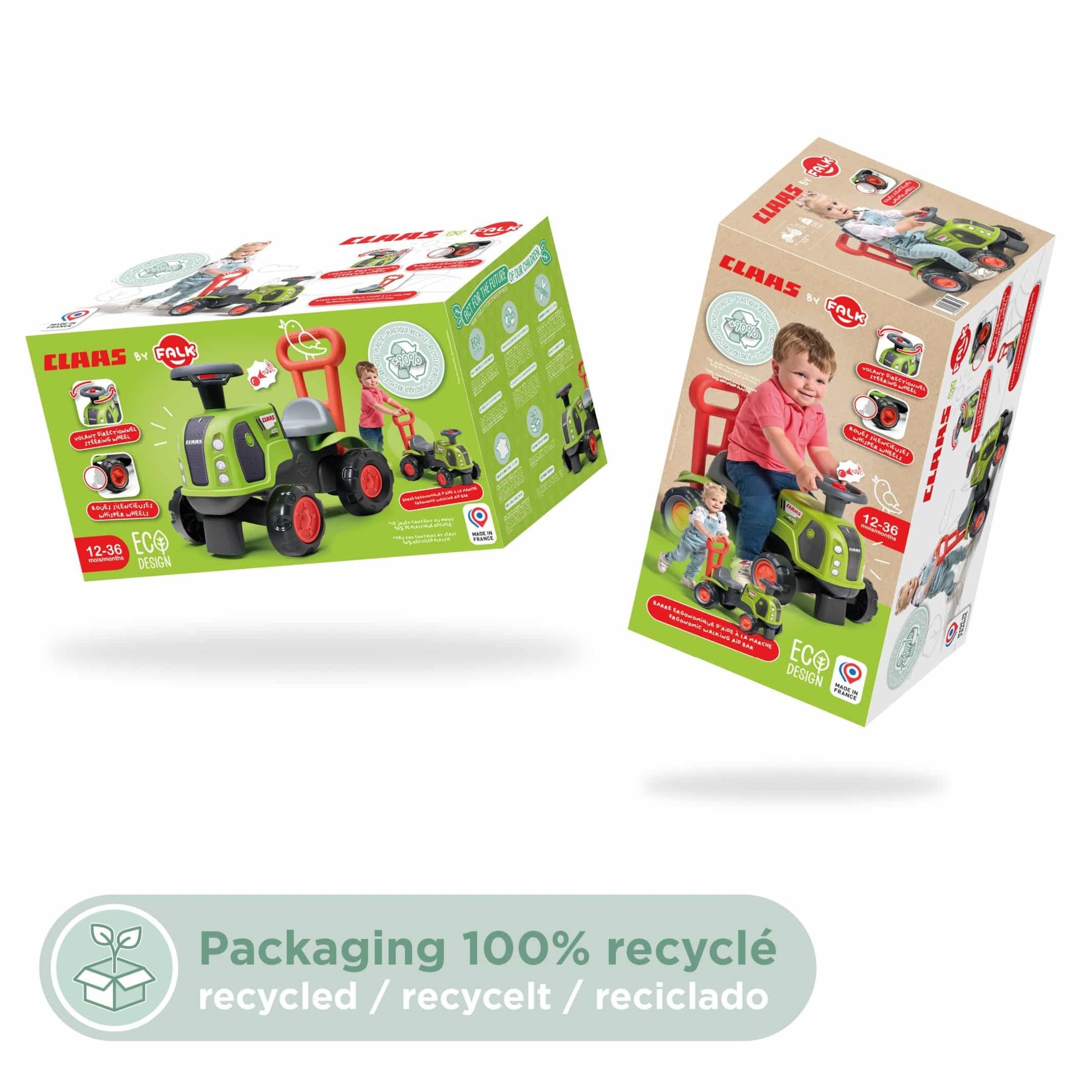 Jeździk Traktor Baby Claas to wyjątkowy pojazd stworzony przez renomowaną markę FALK, który stanowi idealne wprowadzenie do świata rolniczych przygód dla najmłodszych. Ta wierna replika ciągnika Claas Arion 470 została zaprojektowana z myślą o małych odkrywcach, łącząc w sobie funkcję klasycznego jeździka oraz praktycznego pchacza, który wspomaga naukę chodzenia. Wyprodukowany w 100% we Francji, ten ekologiczny traktor powstał w 90% z plastiku pochodzącego z recyklingu, co czyni go wyborem przyjaznym dla środowiska. Dzięki ergonomicznej budowie i wysokiemu oparciu, zabawka zapewnia maluchowi stabilność i bezpieczeństwo podczas pierwszych samodzielnych podróży po domu lub ogrodzie. Pojazd wyposażony jest w skrętną kierownicę z klaksonem, co pozwala dziecku na łatwe manewrowanie i dodatkową zabawę dźwiękową, stymulującą zmysł słuchu. Lekka, a zarazem wytrzymała konstrukcja sprawia, że traktor jest niezwykle zwrotny i łatwy w prowadzeniu nawet dla początkujących kierowców. To doskonały pomysł na prezent, który łączy aktywność fizyczną z rozwijaniem wyobraźni.