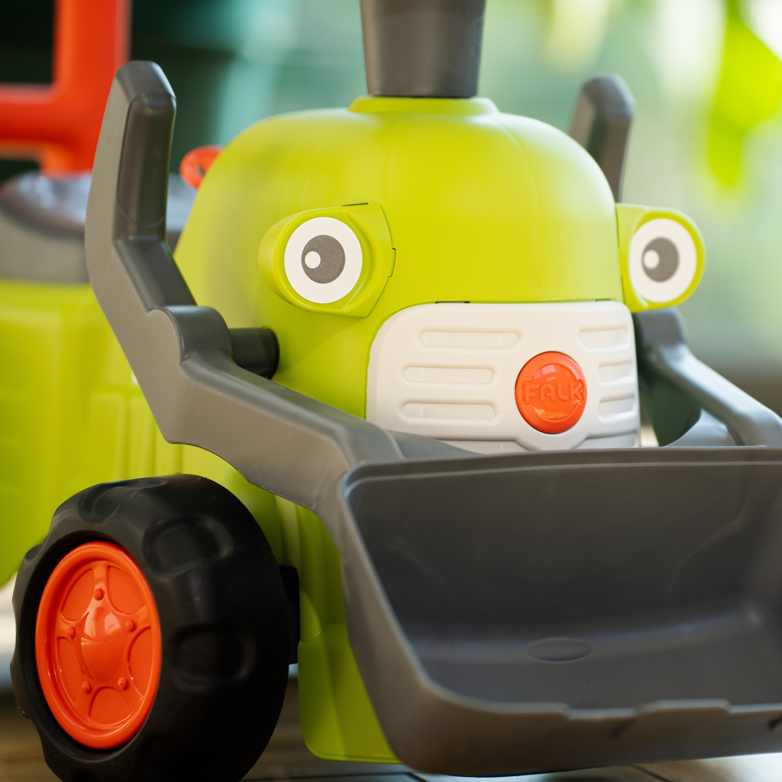 Traktor Claas Vintage Baby od marki Falk to uroczy i sprytny jeździk z ładowaczem, który doskonale sprawdzi się jako pomoc w stawianiu pierwszych kroków dla najmłodszych miłośników maszyn rolniczych. Ten mały jeździk towarzyszy dziecku już od 12 miesiąca życia, wspierając jego rozwój ruchowy. Wyposażony jest w ergonomiczną rączkę do pchania, pełniącą funkcję chodzika. Posiada w pełni funkcjonalny ruchomy ładowacz czołowy, który zwiększa atrakcyjność zabawy, pozwalając na załadunek i rozładunek. Ponadto, kierownica z wbudowanym klaksonem i mały dźwiękowy klawisz stanowią fantastyczne źródło stymulacji. Produkt jest w 100% wyprodukowany we Francji i wykonany w co najmniej 90% z plastiku z recyklingu, co czyni go wyborem przyjaznym dla środowiska.