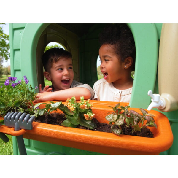 Domek FEBER Recycle ECO to domek wykonany w 90% z ekologicznych materiałów tworzywa sztucznego pochodzącego z recyklingu. Zwycięzca ToyAward 2024 na największych targach zabawek w Norymberdze za swoją wszechstronną edukacje o ekologii. To doskonale wykonany domek zabaw, w którym znajdują się wszystkie aktywności potrzebne maluchom do wzbudzenia ciekawości w przyrodzie. Świetne miejsce i świetna nauka dla dzieci na temat segregowania śmieci, recyklingu, ekologicznego uprawiania roślin oraz produkcji zielonej energii dzięki turbinie wiatrakowej oraz panelom słonecznym na dachu. W zestawie 2 kosze do recyklingu (żółty i niebieski), mały ogródek (w doniczkach) i narzędzia. To świetna aktywność na świeżym powietrzu dla dzieci. Można bawić się w sadzenie nasion i obserwowanie wzrostu roślin. Wyposażony jest również w karmnik dla ptaków. A woda deszczowa jest idealna do podlewania roślin lub kwiatów. Wiatrak i imitacja panelu słonecznego dają niesamowite funkcje do nauki o zrównoważonych energiach! Odporne, łatwe w montażu i wyposażone w system Anti UV zapobiegający utracie koloru i zwiększający odporność tworzywa.