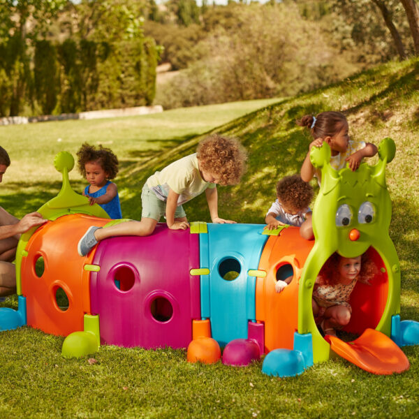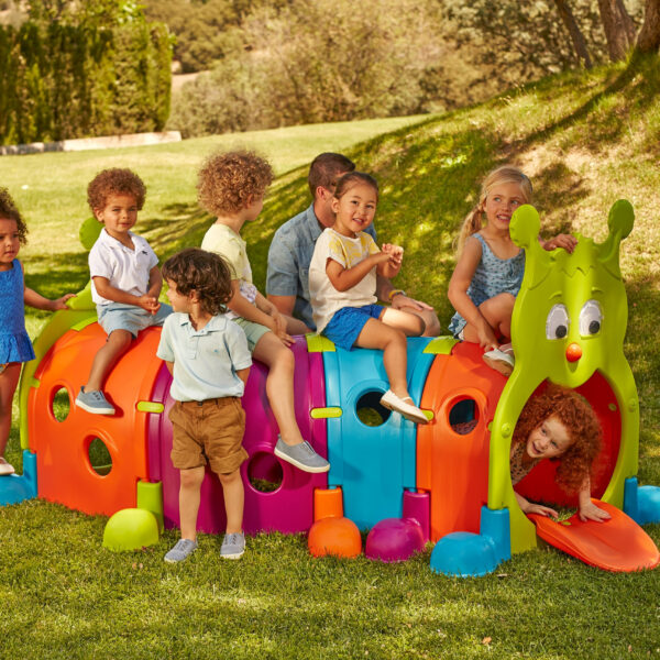 Tunel Gąsienica FEBER to idealne rozwiązanie zarówno do prywatnych ogrodów, jak i placówek edukacyjnych – przedszkoli, żłobków czy sal zabaw. Kolorowy, stabilny, pełen niespodzianek plac zabaw sprzyja aktywności fizycznej, zabawie w grupie i rozwojowi motoryki – z zachowaniem najwyższych standardów bezpieczeństwa. Wyprodukowany na podstawie najnowszych technologii oraz najwyższych norm bezpieczeństwa w Hiszpanii