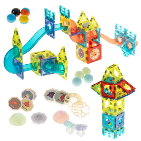 Klocki magnetyczne marble tor kulkowy świecący 75 elementów