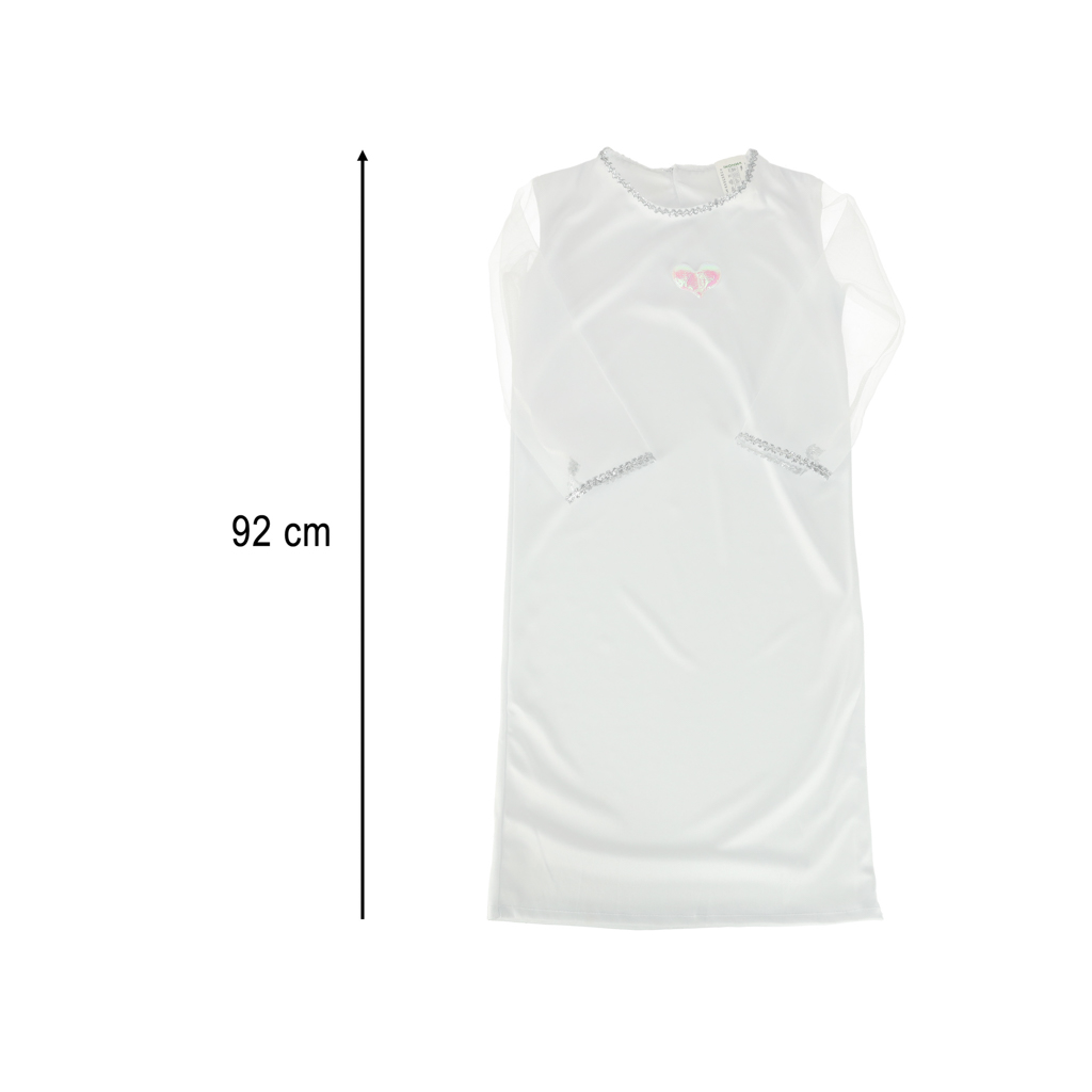 zawiera długą, białą sukienkę z cekinami, srebrny pasek, opaskę