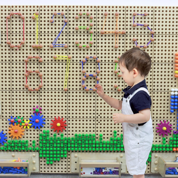 MASTERKIDZ Drewniana Tablica STEM Wolnostojąca XXL w Kształcie Domu + Akcesoria