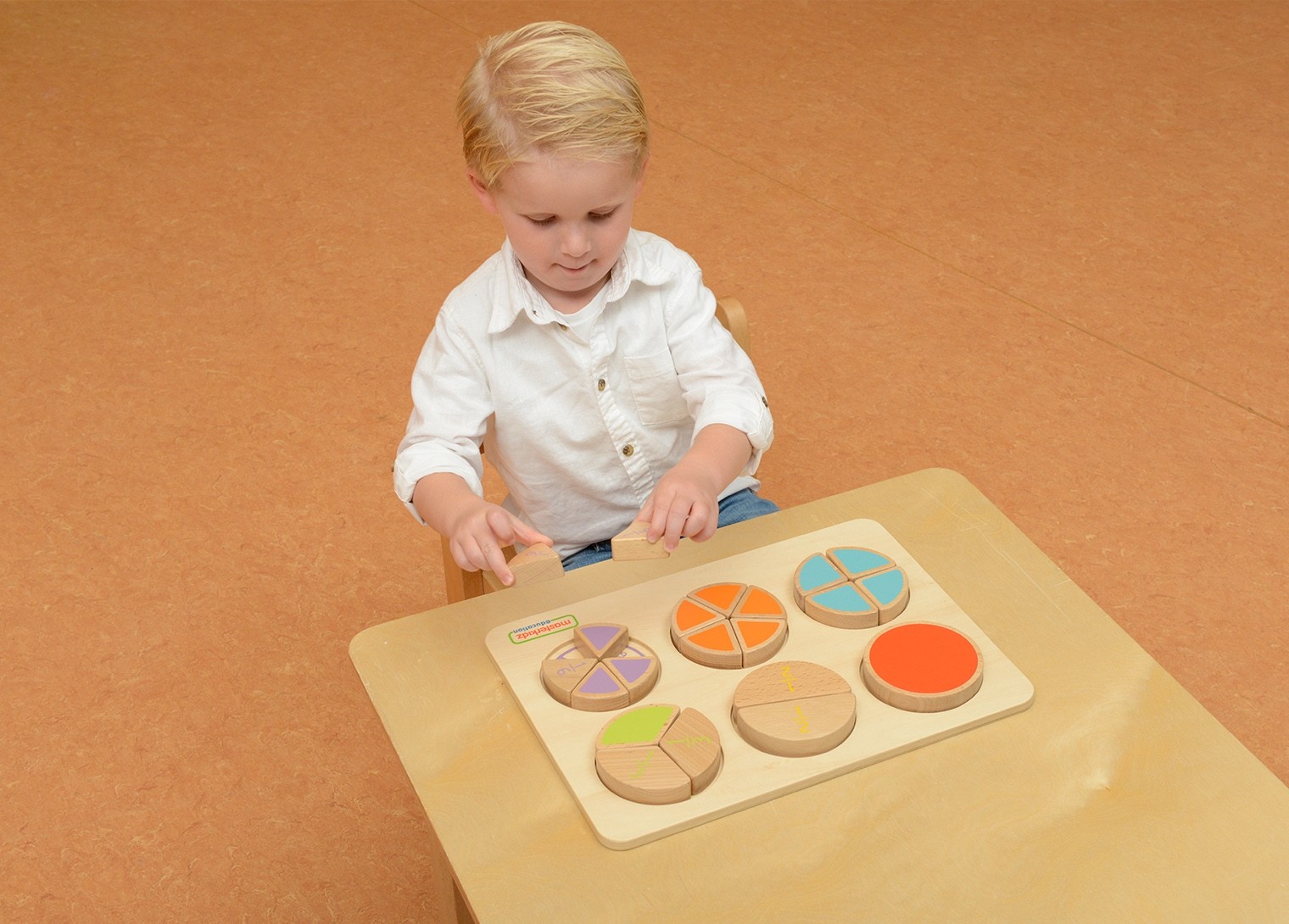 - – 6 układanek z ułamkami (całość, 1/2, 1/3, 1/4, 1/5, 1/6)