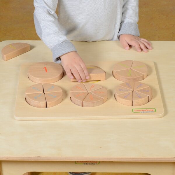 Ta wspaniała drewniana układanka marki MASTERKIDZ sprawia, że nauka podstawowych pojęć matematycznych staje się prostą i przyjemną przygodą. Kolorowe, skrojone z europejskiego drewna elementy pozwalają dziecku zobaczyć na własne oczy, jak działa podział całości na części. Każdy element pasuje do swojego miejsca według koloru, a na odwrocie znajdziemy zapisane ułamki – to podwójna dawka edukacyjnej zabawy. Idealna dla maluchów stawiających pierwsze kroki w świecie matematyki, jak i dla starszaków, którzy utrwalają wiedzę zdobytą w szkole.