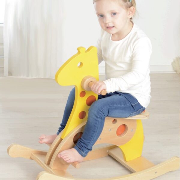 Nasza sympatyczna, milutka żyrafa na biegunach od renomowanej marki zabawek drewnianych Masterkidz z pewnością przypadnie do gustu każdemu dziecku. Stylowy i uroczy design oraz solidna konstrukcja sprawi mnóstwo radości każdemu dziecku. Wykonana z ekologicznego buku europejskiego i sklejki. Żyrafa na biegunach została pomalowana nietoksycznymi farbami w intensywnych kolorach, które spodobają się wszystkim maluchom.