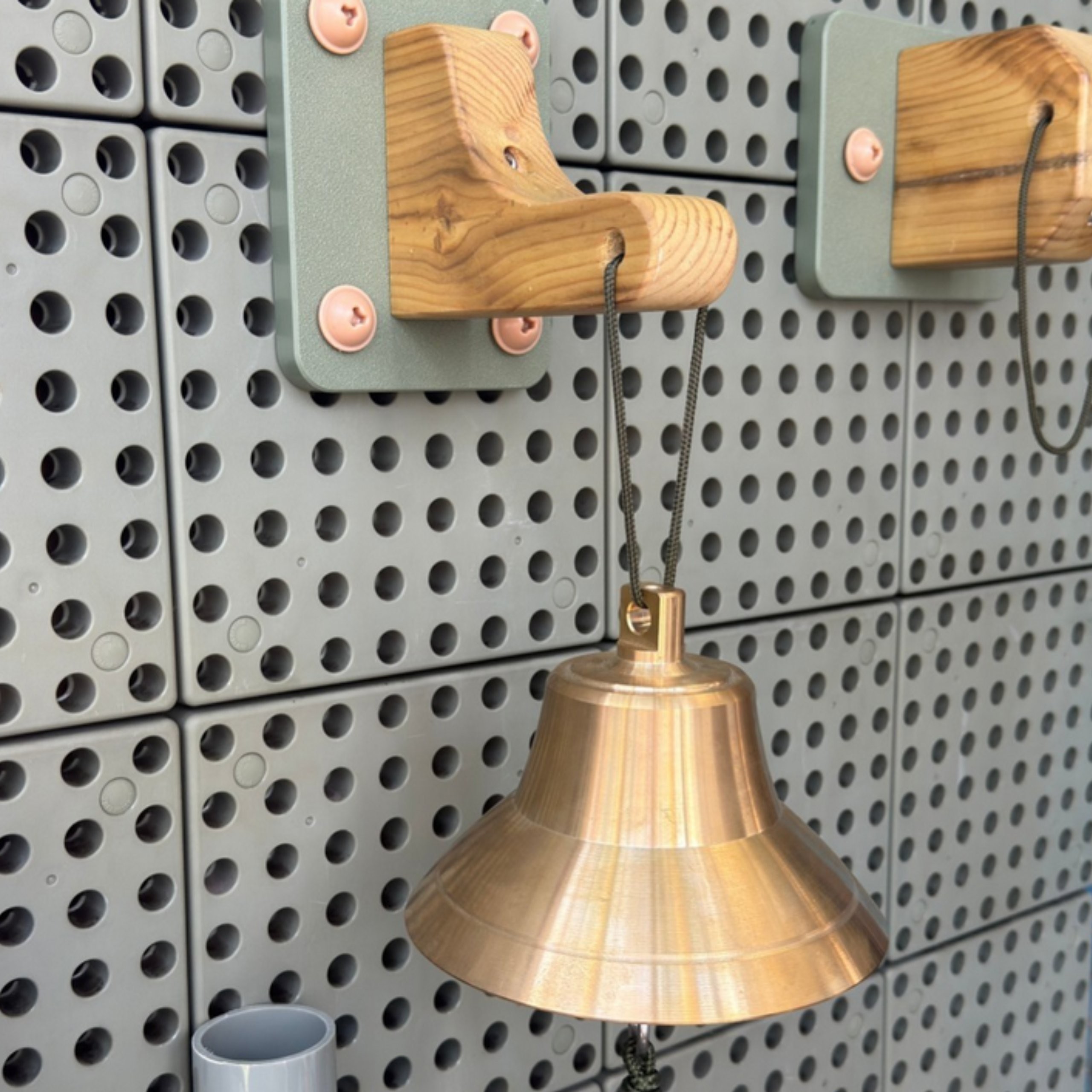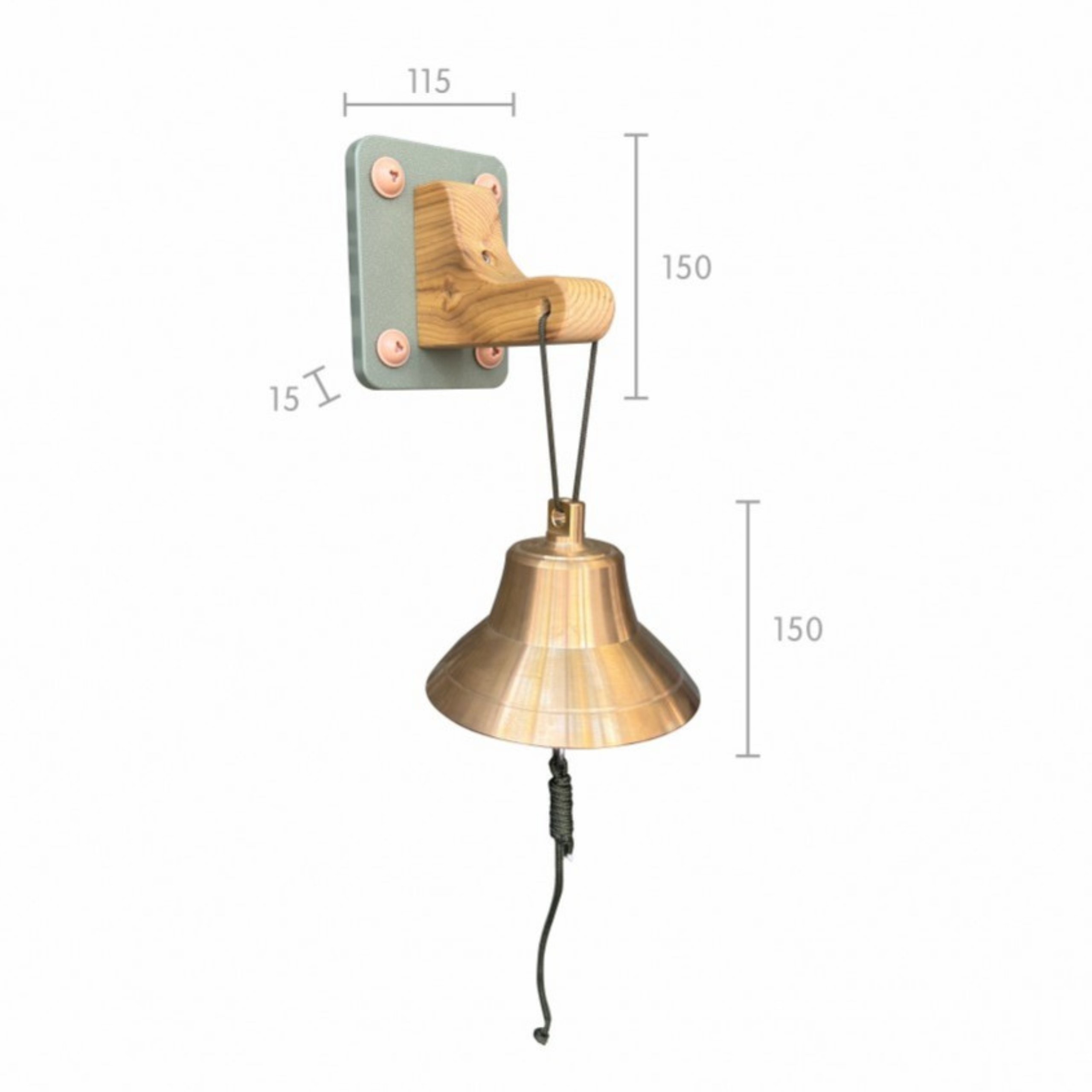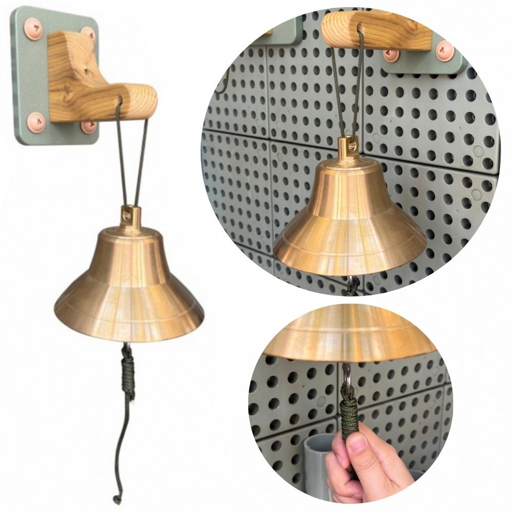 - – Prawdziwy dzwonek wykonany z brązu (nie plastik!) osadzony na solidnym, drewnianym wsporniku.