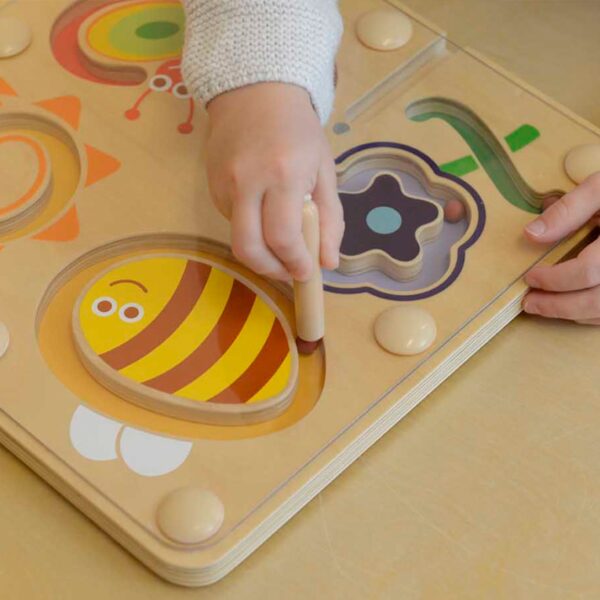 Poznaj fascynujący świat kolorowych labiryntów od marki Masterkidz, gdzie każda rączka zamienia się w sprawnego odkrywcę! Ta drewniana tablica to nie tylko urocza pszczółka, kwiatek, motylek i słoneczko, ale przede wszystkim genialna gimnastyka dla małego umysłu. Za pomocą magnetycznego patyczka Twój maluch precyzyjnie prowadzi kuleczki przez kręte ścieżki, łącząc radosną zabawę z intensywną nauką koncentracji. Wybierając tę zabawkę, dajesz dziecku to, co najlepsze dla jego rozwoju. Spraw, by każde popołudnie było pełne uśmiechu i nowych umiejętności z tym wyjątkowym zestawem edukacyjnym!