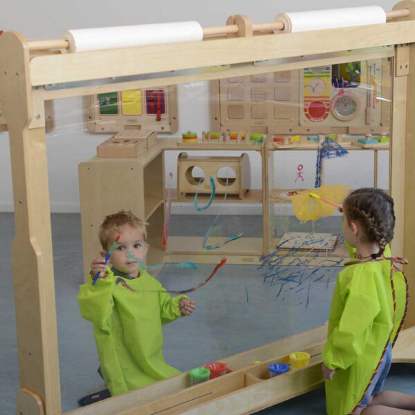 Okienko posiada możliwość zamocowania rolki z papierem, dzięki czemu dziecko może bawić się, malując na papierze, lub na szkle – wedle uznania. Okienko jest na tyle duże, że śmiało bawić może się jednocześnie nawet 4 dzieci.