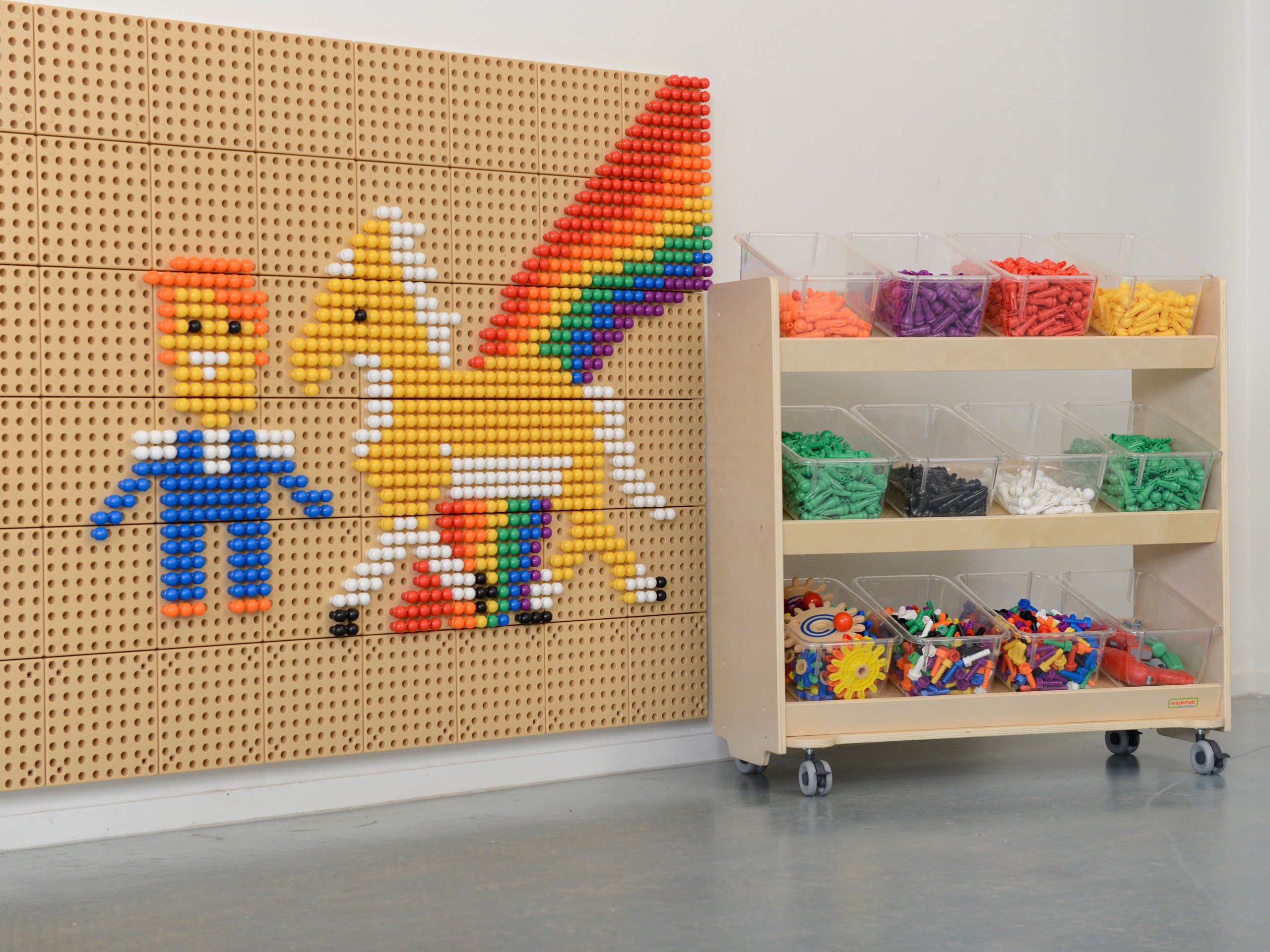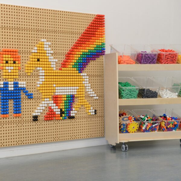 Mobilny regał na kółkach ME29959 to nowoczesny i solidny element wyposażenia każdej sali edukacyjnej. Zaprojektowany z myślą o wygodzie najmłodszych użytkowników, pozwala na łatwe przechowywanie i organizację drobnych oraz średnich elementów, takich jak śrubki, nakrętki czy kołki. Dzięki eleganckiemu wyglądowi i funkcjonalności, idealnie komponuje się z przestrzenią edukacyjną, zachęcając dzieci do samodzielności i kreatywności podczas zajęć.