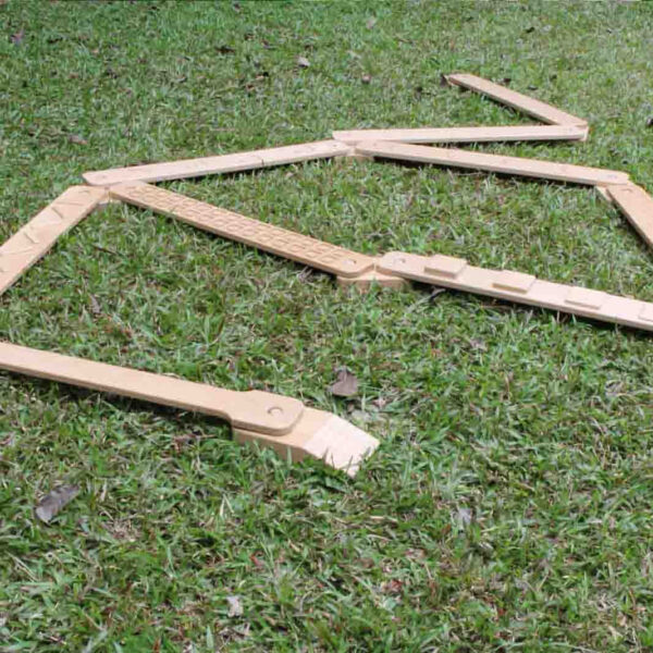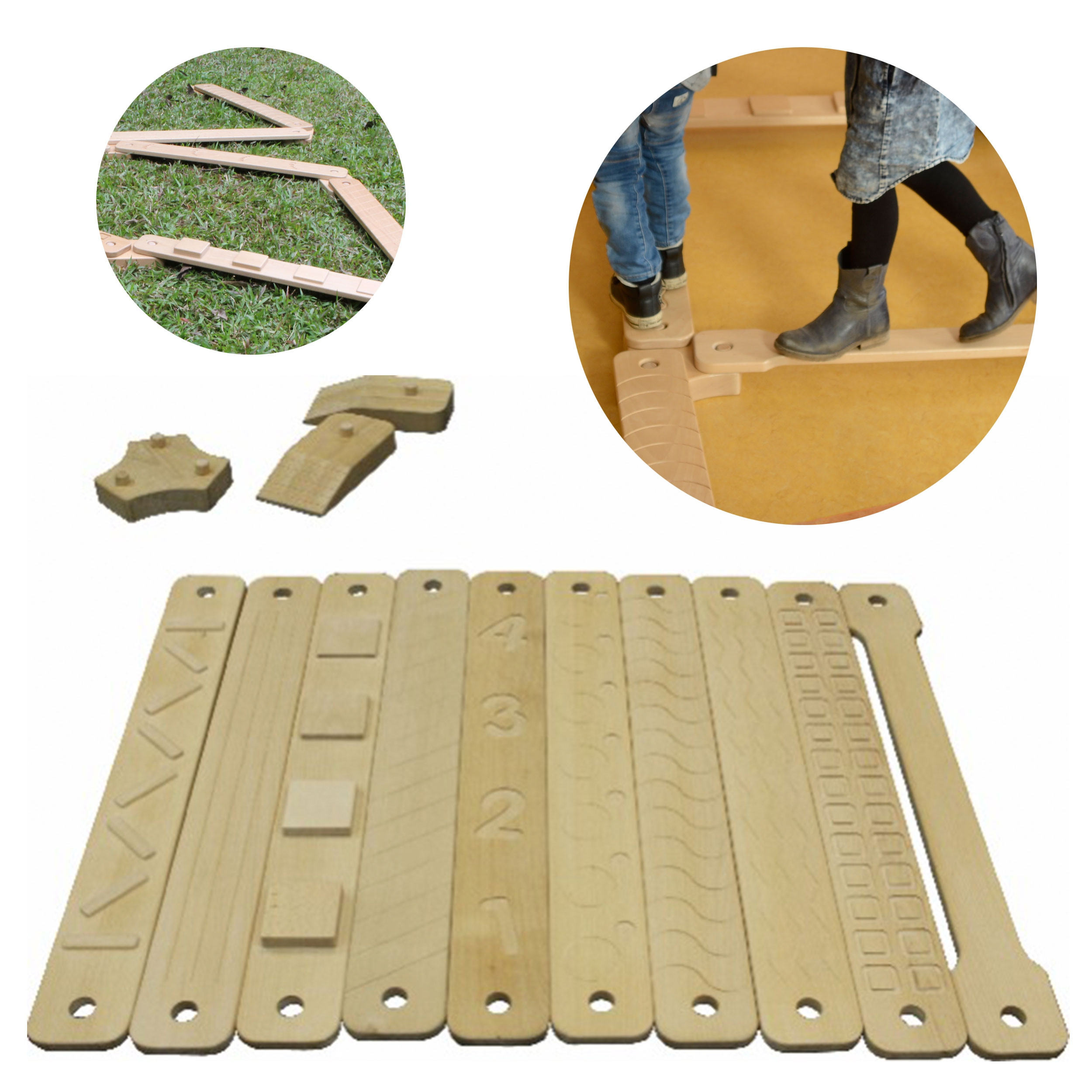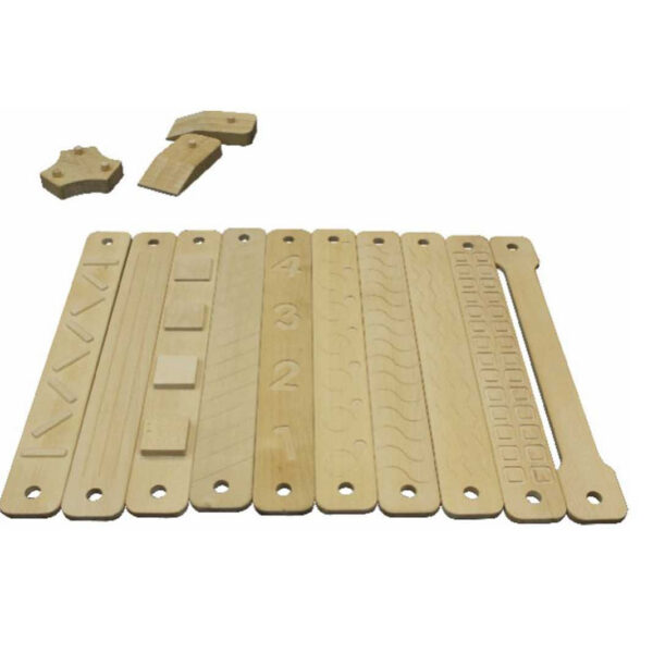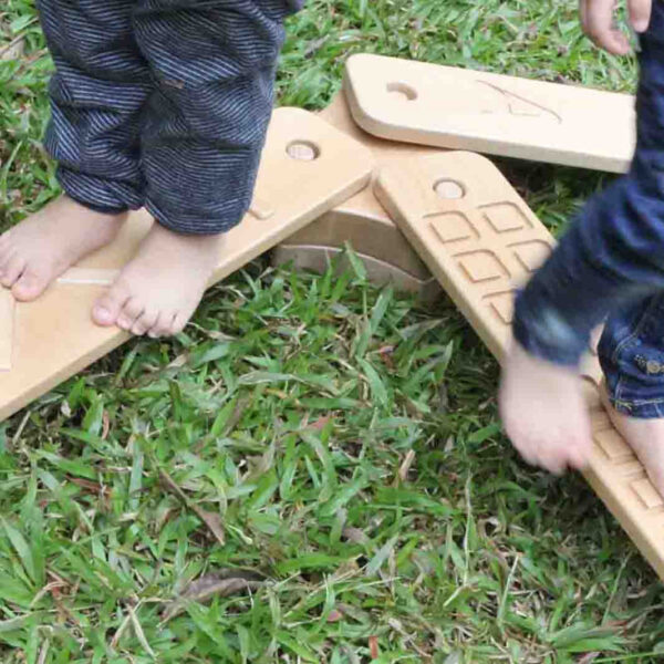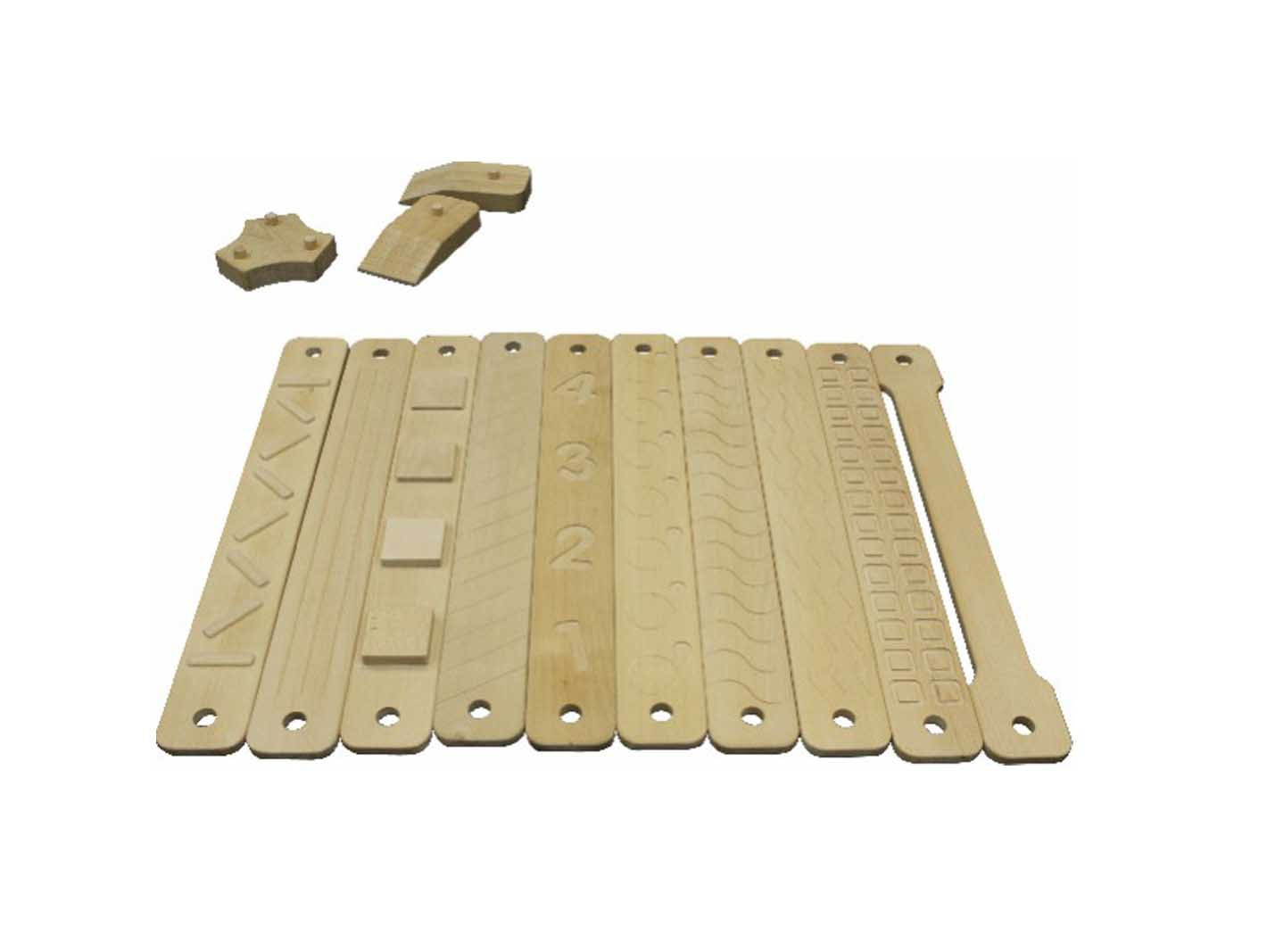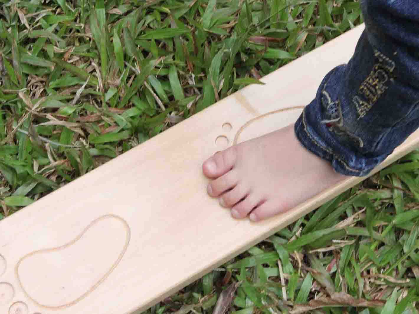 Dziecko może również rozwinąć swój zmysł dotyku, ponieważ deseczki posiadają wycięte różne wzory i kształty. Chodząc boso, dzieci mogą je odczuwać na swoich stópkach. Mogą zgadywać na jakim wzorku stoją w danym momencie, co jeszcze bardziej urozmaici zabawę.