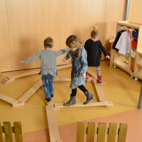 Dzięki możliwości ułożenia zestawu w wiele różnych tras, dziecko może rozwinąć swoją kreatywność, próbując wymyślić jak najciekawsze ścieżki do przejścia. Następnie, próbując przejść wyznaczoną trasę, dziecko ćwiczy równowagę i balans, co wpływa świetnie na rozwój błędnika. Jest to niesamowicie istotne we wczesnym rozwoju.