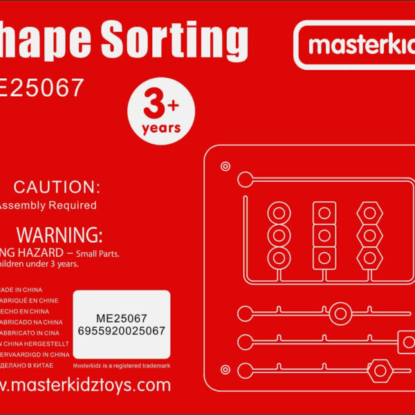 Ta tablica edukacyjna skupia się na rozpoznawaniu kształtów i motoryce małej. Jest podzielona na dwie części: górna zawiera pasek zadań, w którym dzieci muszą umieścić trzy kształty (czerwony sześciokąt, niebieski kwadrat i żółte koło) w odpowiednich miejscach. Dolna część planszy to trzy kolumny z 9 kształtami, które dzieci muszą dopasować do właściwych miejsc, koncentrując się na kolorze i kształcie. Elementy są umieszczone na tablicy w sposób umożliwiający ich łatwe przesuwanie, ale niemożliwe do zgubienia. Tablica może być używana na biurku lub zamontowana na ścianie.