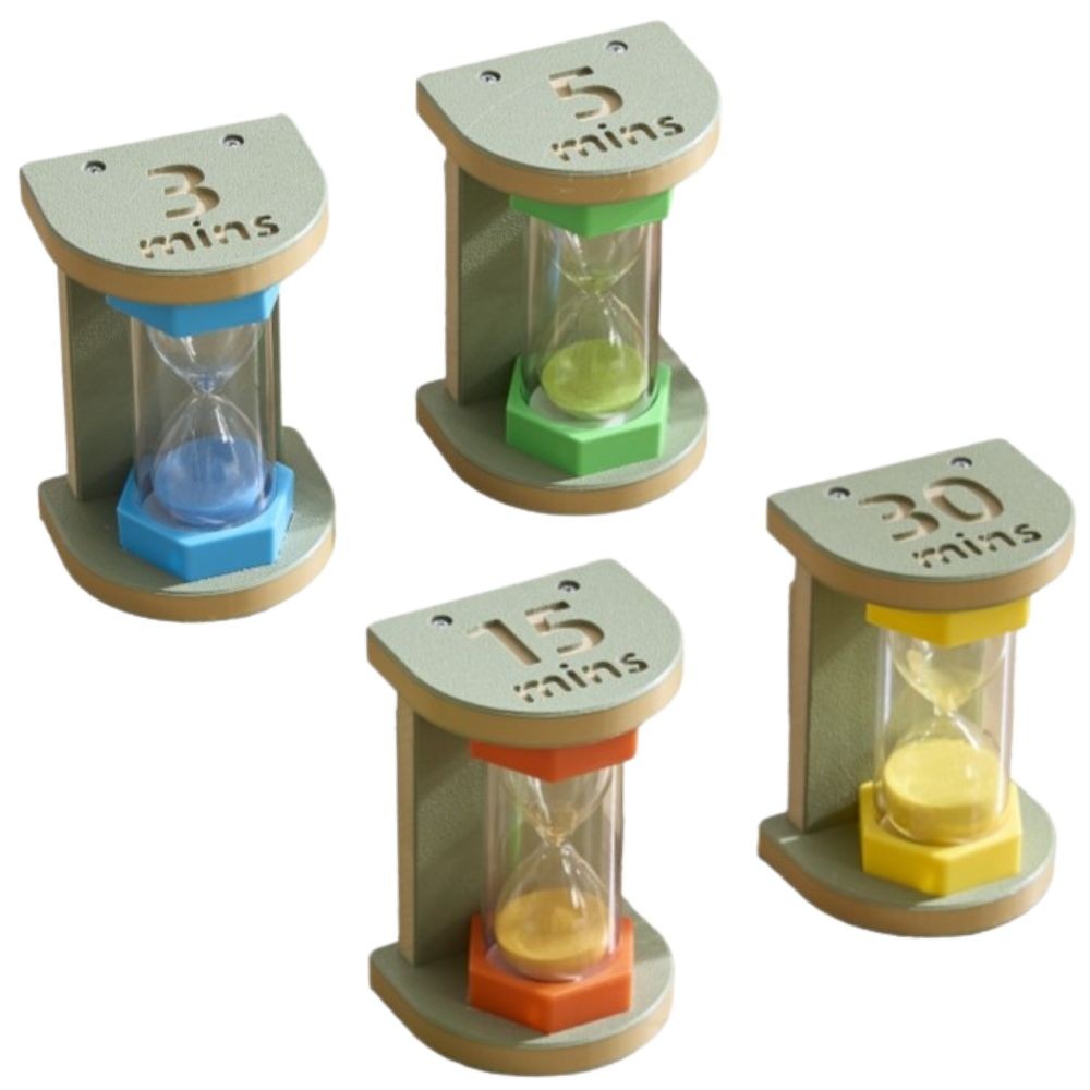 - – Każdy czas to inny, żywy kolor, co ułatwia dziecku szybkie rozpoznanie odpowiedniego timera.