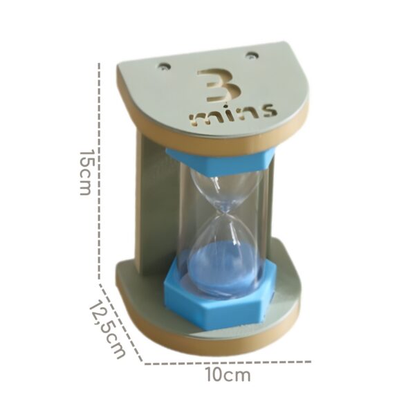 - – 1x Klepsydra 3-minutowa (np. na szybkie mycie zębów lub sprzątanie klocków).