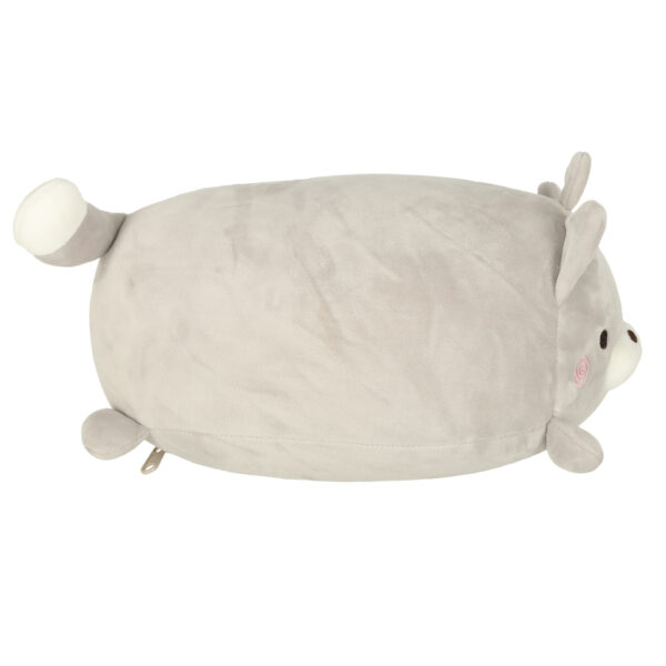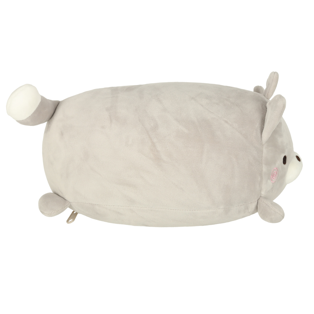 Dla dzieci: 3+. Kolor: szary. Materiał: poliester. Wypełnienie: kulki styropianowe. Funkcja: poduszka i maskotka 2w1. Waga: 187 g. Wymiary maskotki: Wysokość: 14 cm. Szerokość: 18 cm. Długość: 29 cm. Wymiary poduszki: Wysokość: 30 cm. Szerokość: 30 cm. Gł