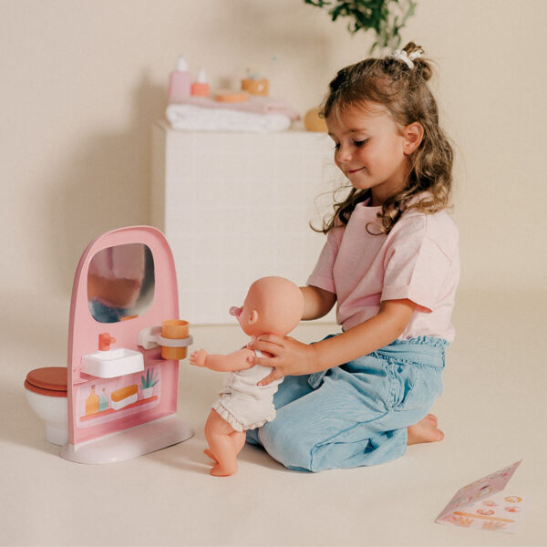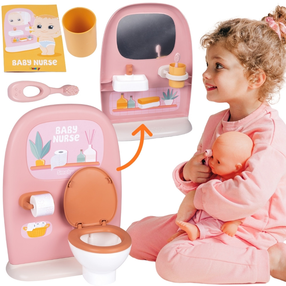 Dwustronna toaleta od Smoby Toys pomaga dzieciom poznawać zasady higieny, łącząc troskę o lalę z radością odgrywania ról. Z jednej strony znajduje się toaleta z ruchomą deską i rolką papieru, a z drugiej – umywalka z lustrem i szczoteczką do zębów. Kompaktowy mebelek w pudrowym różu zachwyca wyglądem i bezpieczeństwem wykonania. To idealny zestaw, który rozwija empatię, odpowiedzialność i uczy poprzez zabawę!