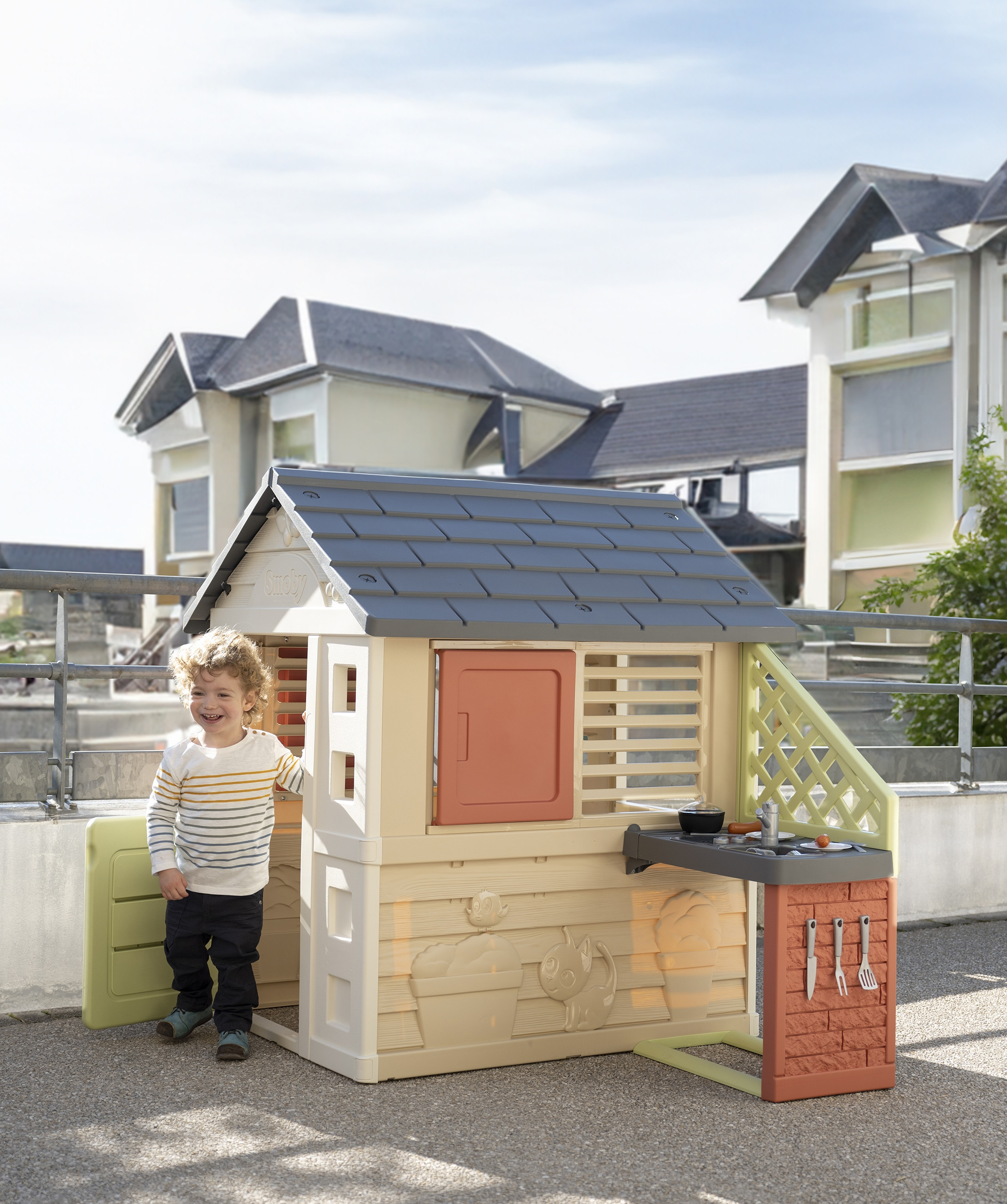 Smoby Domek ogrodowy Nature z kuchnią to doskonałe miejsce do wspólnej zabawy na świeżym powietrzu. Dzięki przestronnej konstrukcji, maluchy mogą zaprosić przyjaciół i cieszyć się wspólną zabawą w ogrodzie. Jego stonowane kolory sprawiają, że idealnie wpasowuje się w każdą przestrzeń, tworząc harmonijną atmosferę w Twoim ogrodzie.