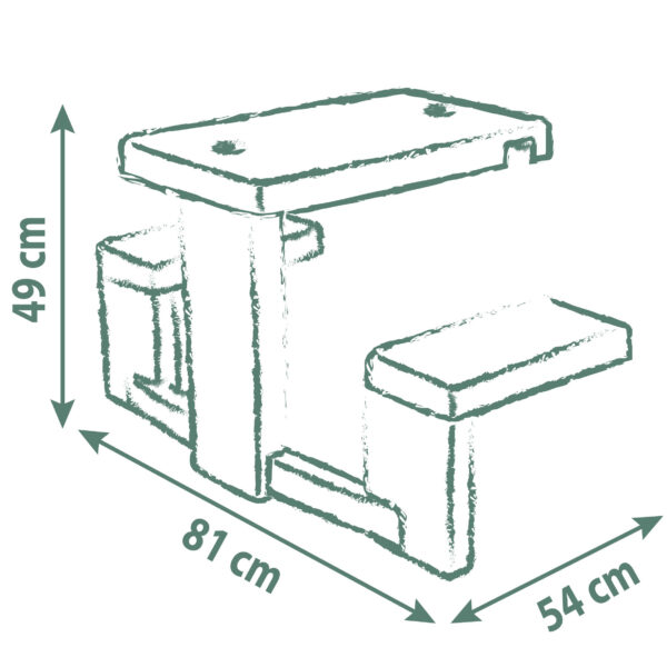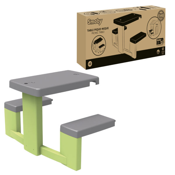 Smoby Stolik Piknikowy to doskonały sposób na wzbogacenie domku ogrodowego i stworzenie dodatkowej przestrzeni do zabawy. Dzięki niemu dzieci będą mogły zorganizować piknik, zjeść przekąskę z przyjaciółmi, a także naśladować dorosłych podczas przygotowywania posiłków, co rozwija ich wyobraźnię i umiejętności społeczne. Produkt jest wykonany z wytrzymałego tworzywa sztucznego, co zapewnia łatwość w utrzymaniu czystości. Dzięki powłoce ANTI-UV, stolik i ławki zachowują swoje intensywne kolory przez długi czas, nawet pod wpływem promieni słonecznych. Stonowane, naturalne barwy doskonale pasują do domków ogrodowych Smoby.