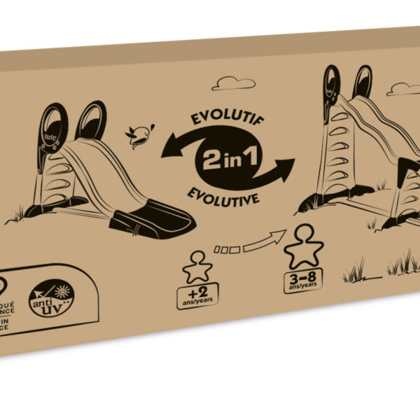Smoby zjeżdżalnia MEGAGLISS 2w1 to wyjątkowa zabawka ogrodowa, która rośnie razem z dzieckiem. Dzięki ślizgowi o długości 150 cm, zjeżdżalnia jest odpowiednia już dla dwulatków, a z dodatkowymi elementami przedłużającymi można ją przekształcić w mega zjeżdżalnię o długości aż 360 cm, idealną dla starszych dzieci.Zjeżdżalnia marki Smoby zapewnia bezpieczeństwo najmłodszych – szeroka podstawa gwarantuje stabilność, a antypoślizgowe stopnie i ergonomiczne uchwyty pomagają dzieciom w bezpiecznym wchodzeniu i zjeżdżaniu. Wykonana z materiałów odpornych na promieniowanie UV, jest wyjątkowo trwała, nie blaknie pod wpływem słońca, a jej wytrzymała konstrukcja sprawia, że posłuży przez długie lata. Idealna dla rodziców, którzy szukają funkcjonalnej zabawki, która towarzyszyć będzie ich pociechom przez długie lata pełne zabawy na świeżym powietrzu.