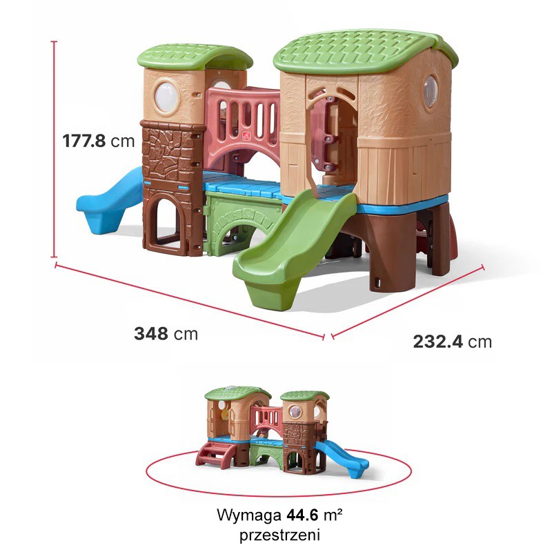 „Most z tunelem” to jeden z najatrakcyjniejszych placów zabaw w ofercie amerykańskiej firmy STEP2. Bardzo atrakcyjny plac zabaw dla mniejszych dzieci, doskonały zarówno na zewnątrz jak i do środka. Składają się na niego stojące ponad ziemią domek, wieża strażnicza i most łączący obydwie części.