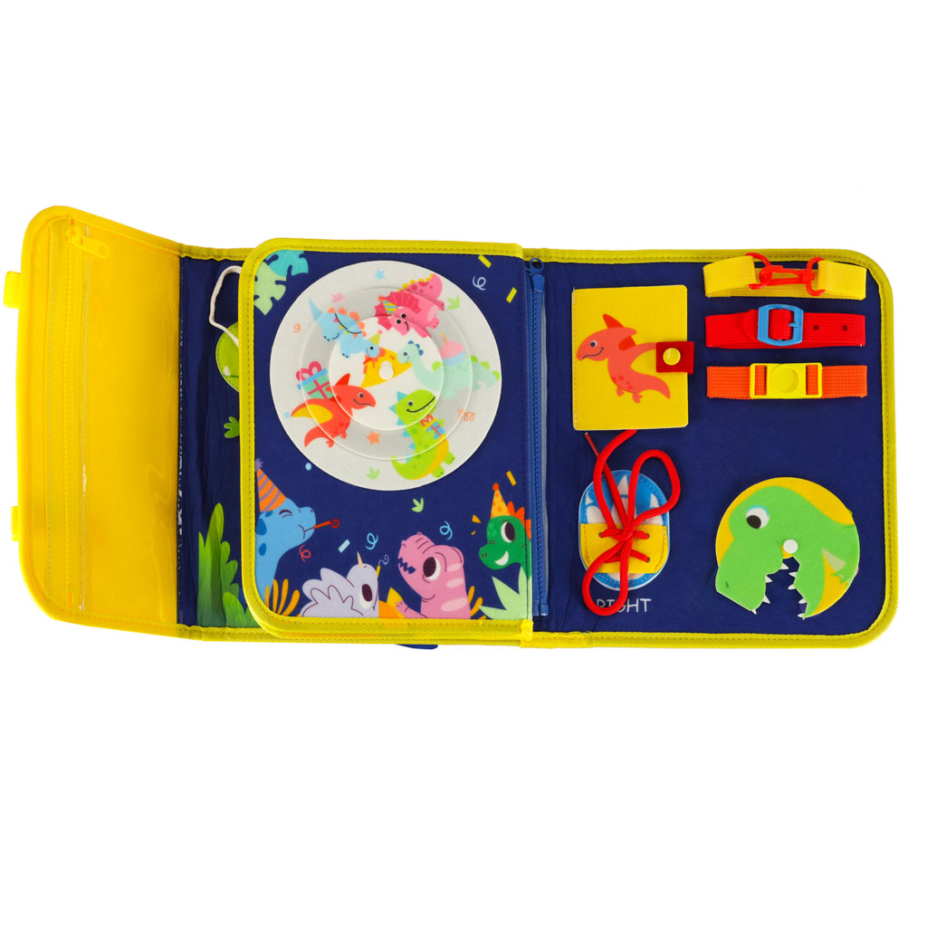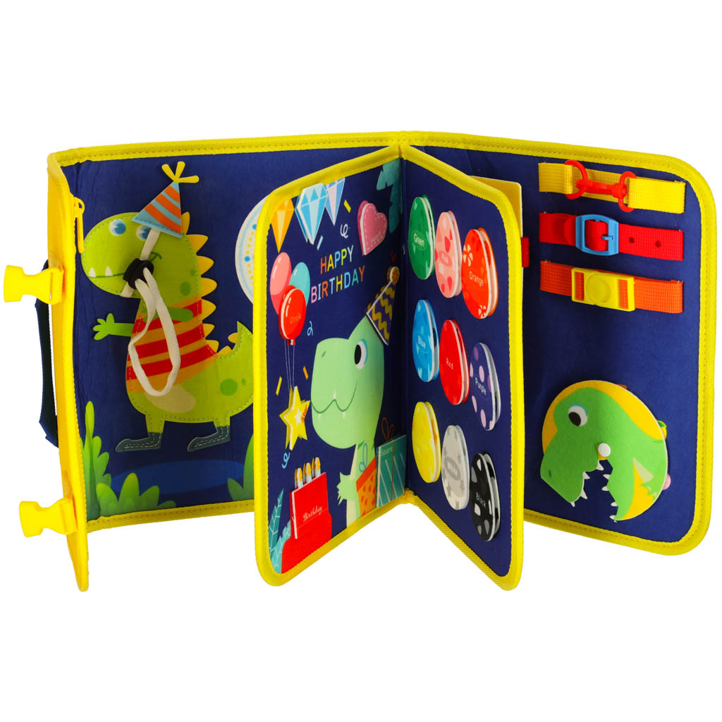 tablica manipulacyjna z motywem dinozaurów ma w sobie elementy, które przydadzą