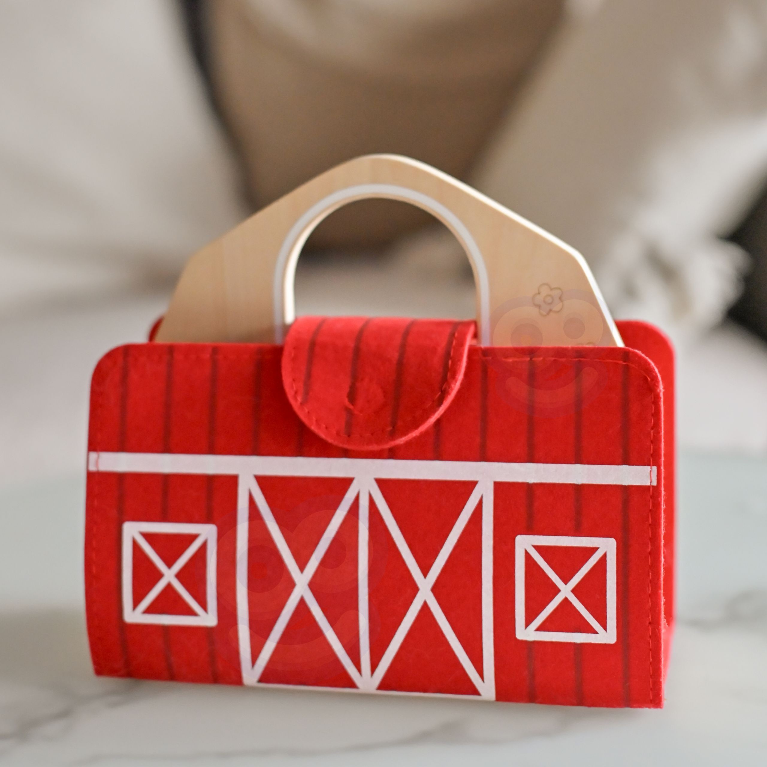 - – Drewniana farma w filcowej, wygodnej walizce