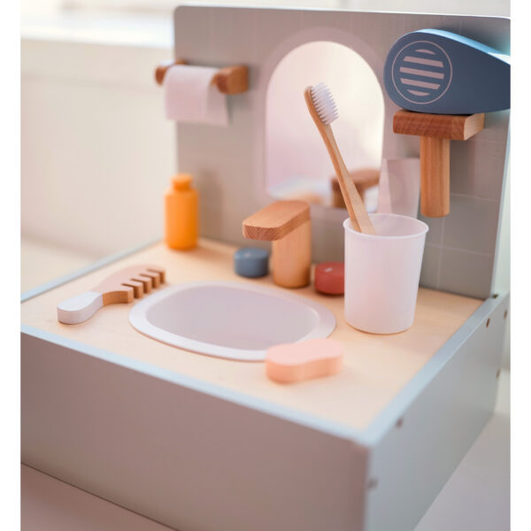 Zmień codzienne rytuały w łazience w kreatywną zabawę dzięki zestawowi Toilet Bathroom od Tooky Toy. Ten uroczy, miniaturowy zestaw zawiera wszystko, co potrzebne do odgrywania scenek związanych z łazienką, w tym lustro, udawaną umywalkę z kranem, a także kolekcję realistycznych akcesoriów. Wszystkie przedmioty są zaprojektowane tak, by przypominały rzeczywiste akcesoria łazienkowe, zachęcając tym samym do nauki ważnych nawyków higienicznych. Zestaw Toilet Bathroom to świetny sposób na rozwijanie kreatywności oraz naukę codziennych nawyków, będąc jednocześnie wyjątkowym uzupełnieniem dziecięcej zabawy.