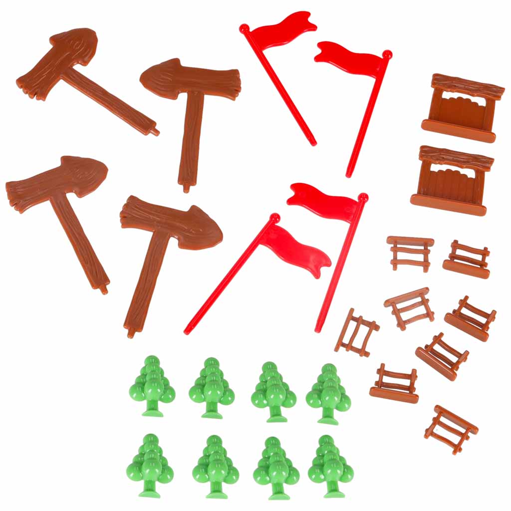 Ogrodzenia i oznaczenia: płotki (8 szt.), furtki (2 szt.), flagi (4 szt.),