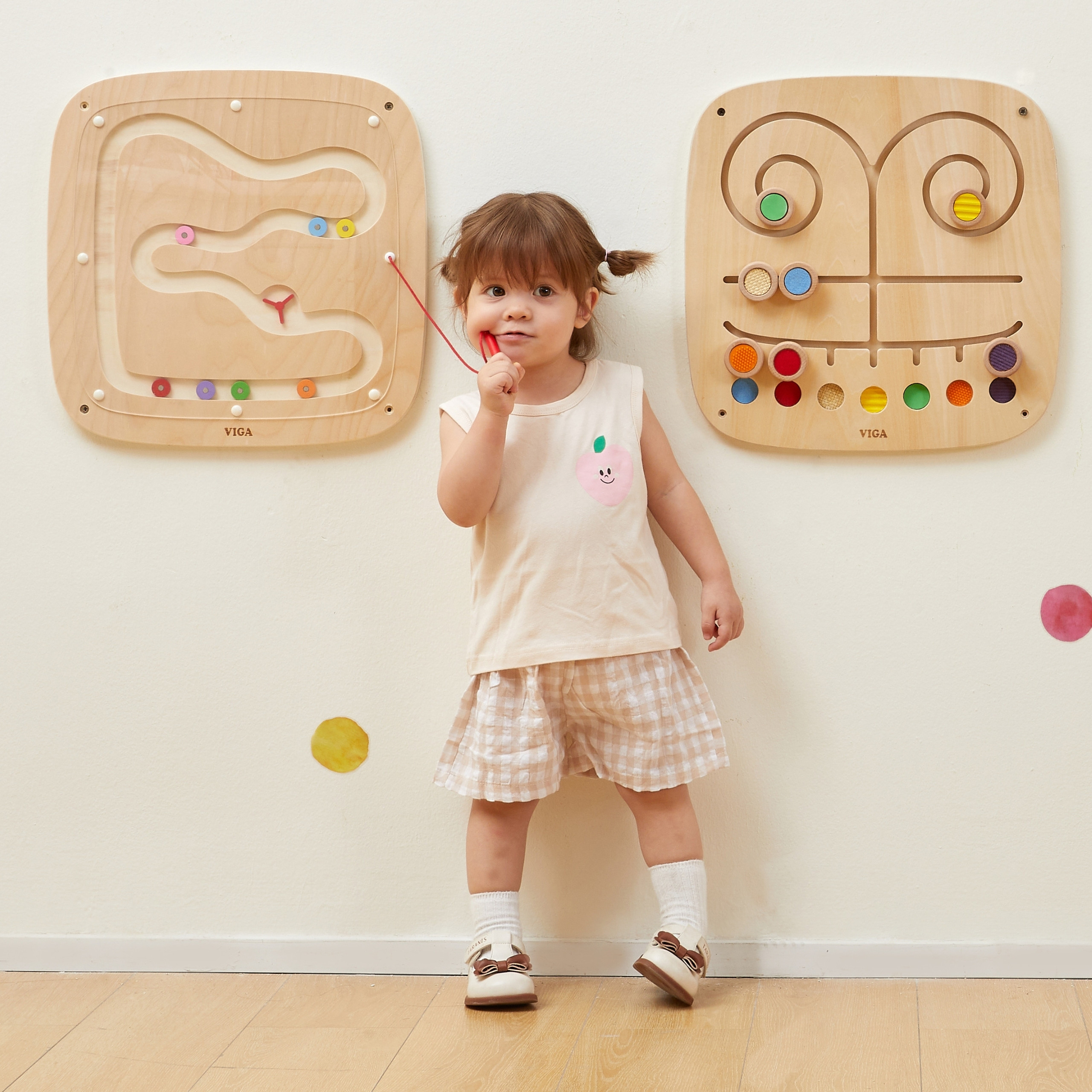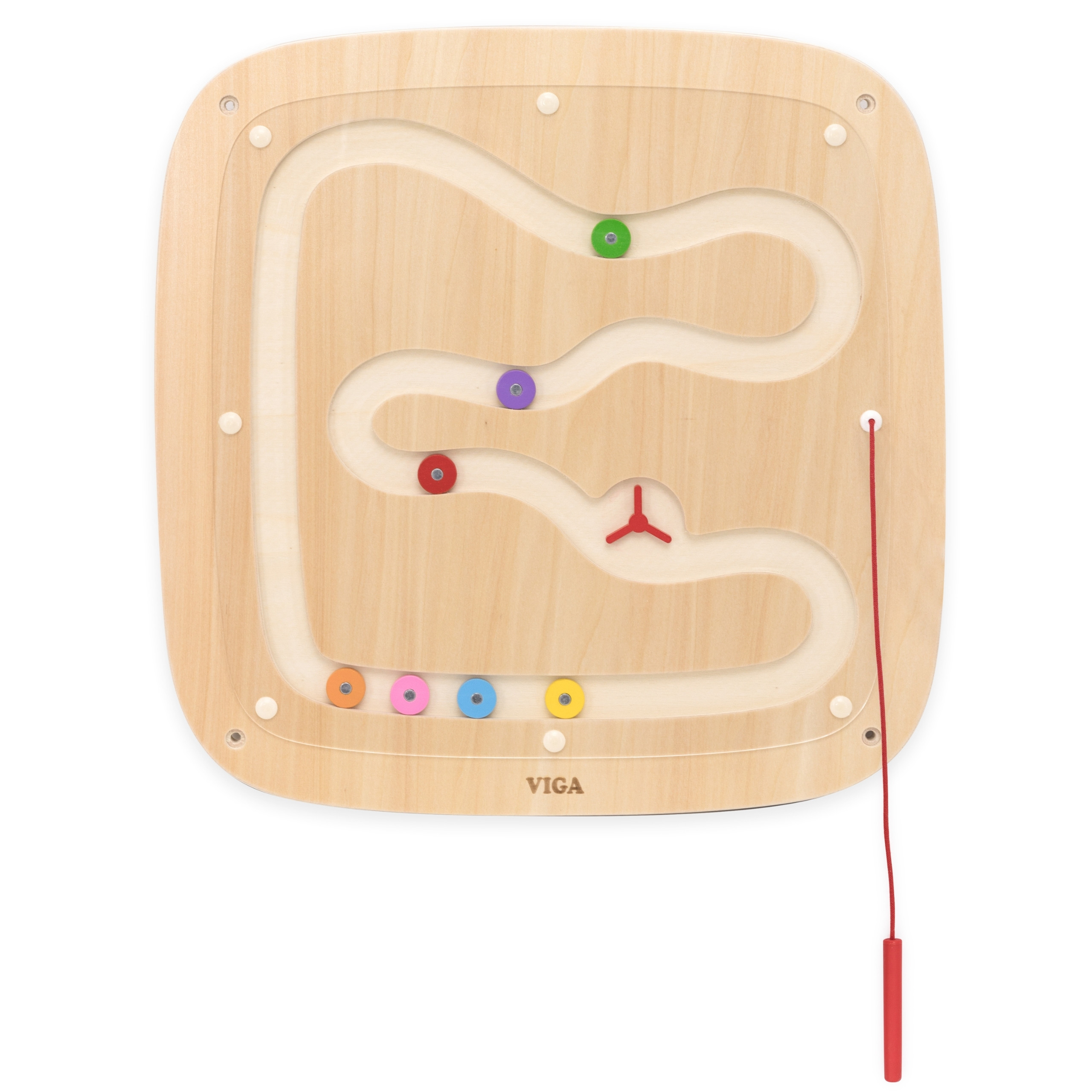 Odkryj fascynujący świat grawitacji z tą interaktywną tablicą drewnianą od VIGA! Ta edukacyjna zabawka została stworzona z myślą o małych odkrywcach, którzy uwielbiają eksperymentować i poznawać otaczający ich świat. Przy użyciu magnetycznego rysika, Twoje dziecko będzie przesuwać kolorowe krążki, obserwując ich ruch po dwóch różnych ścieżkach. Jedna jest prosta, a druga pełna zakrętów, co pozwala maluchowi na zrozumienie, jak grawitacja wpływa na prędkość. Idealna do pokoju dziecka, przedszkola czy sali zabaw. Tablica jest trwała, bezpieczna i montowana na ścianie, co oszczędza miejsce na podłodze.