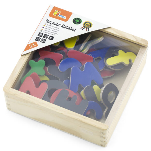 - – literki magnetyczne są zapakowane w estetyczne, drewniane pudełko z przeźroczystą akrylową szybką co ułatwia przechowywanie i jest idealne na prezent,