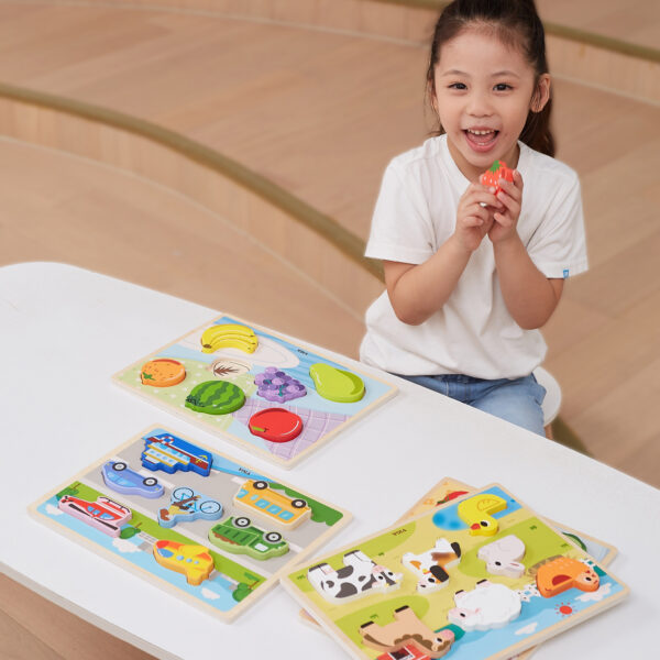 VIGA Drewniane Puzzle Układanka Montessori 2w1 Figurki Pojazdy