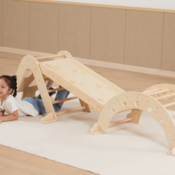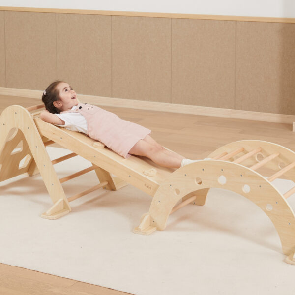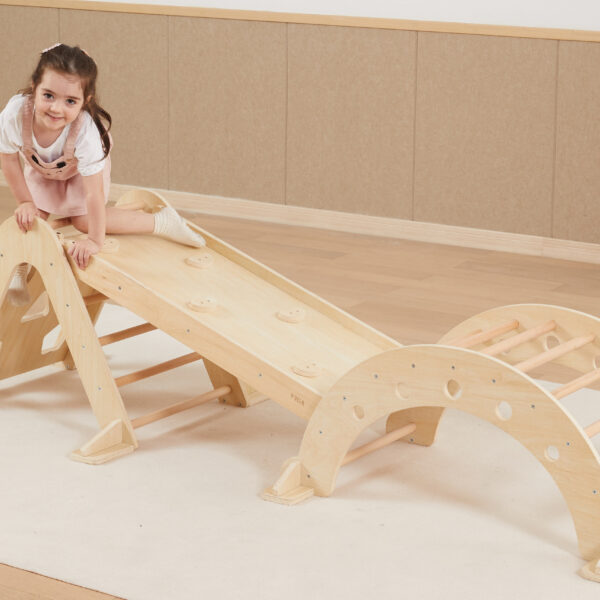 - – można połączyć z drewnianą zjeżdżalnią (44709) i trójkątem wspinaczkowym (44708)