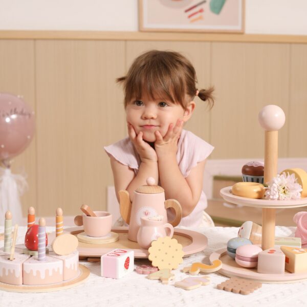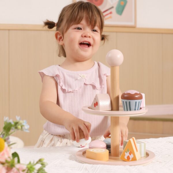 Zaproś swoje dziecko do świata zabawy w kawiarenkę! Drewniany stojak na ciasto marki Viga PolarB to elegancka, dwupoziomowa patera z kolorowymi słodkościami, która umili każdą popołudniową herbatkę. Zestaw zawiera aż 10 uroczych ciasteczek i torcików, wykonanych z bezpiecznych, nietoksycznych materiałów. Gładkie krawędzie i idealny rozmiar sprawiają, że zabawka jest wygodna do chwytania przez małe rączki. To nie tylko świetna zabawa, ale także sposób na rozwój wyobraźni, kreatywności i umiejętności społecznych dziecka.