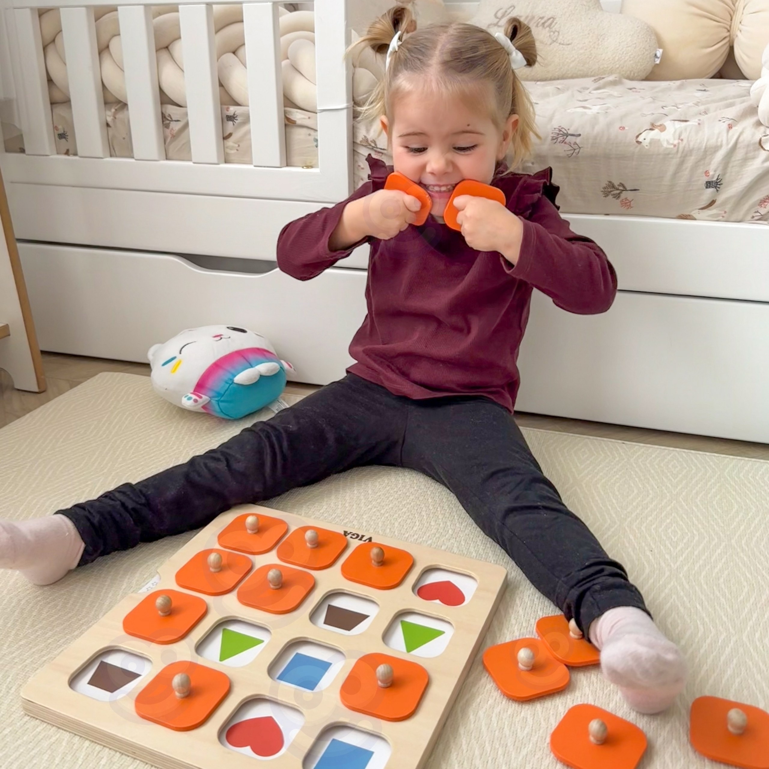 Gra Memory marki Viga to wspaniały pomysł na wspólne spędzenie czasu. Dziecko poprzez zabawę ćwiczy pamięć i koncentrację. Zestaw zawiera aż 10 kart z różnymi motywami o różnym stopniu trudności. Produkt wykonany z najwyższej jakości materiałów bezpiecznych dla dzieci i środowiska. Podnieś kółeczko za uchwyt, zapamiętaj obrazek znajdujący się pod nim i znajdź drugi taki sam! Wygrywa osoba, która znajdzie najwięcej par. Dobrej zabawy!