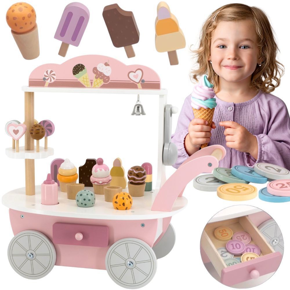 Rozbudź wyobraźnię swojego dziecka z drewnianym sklepem – cukiernią i lodziarnią 3w1 od marki VIGA, który łączy zabawę z nauką w najfajniejszy sposób! To kreatywne centrum zabawy, w którym maluch może sprzedawać lody, lizaki i słodkości jak prawdziwy cukiernik, odkrywając świat ról społecznych. Dzięki mnogości akcesoriów i ruchomemu wózkowi każda zabawa to nowe wyzwania i pomysły! Całość wykonana z wysokiej jakości drewna i pomalowana bezpiecznymi, nietoksycznymi farbami, przyciąga uwagę i zachęca do działania. To idealny prezent dla dziecka, które kocha zabawę, rozwój i wspólne zabawy z rodziną!