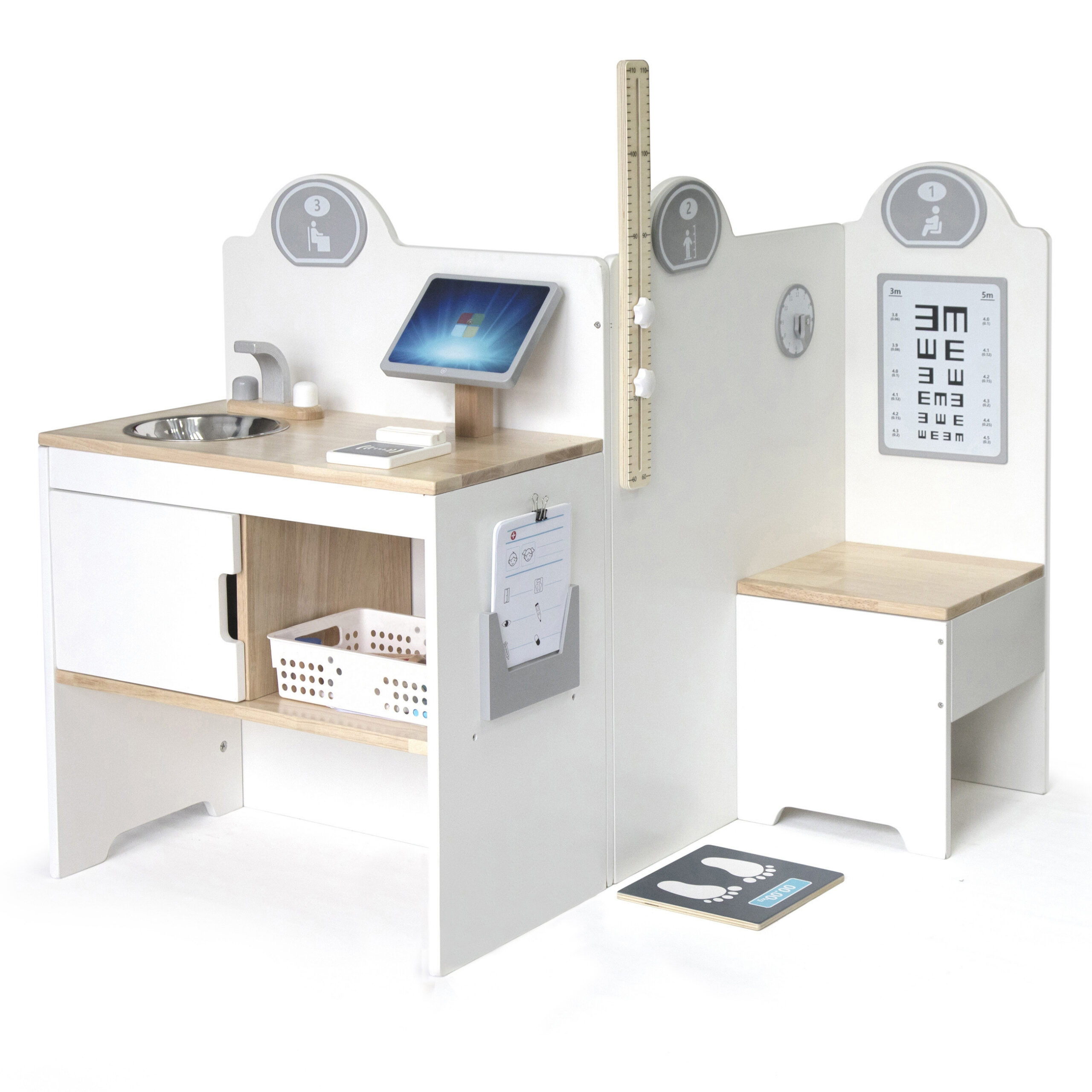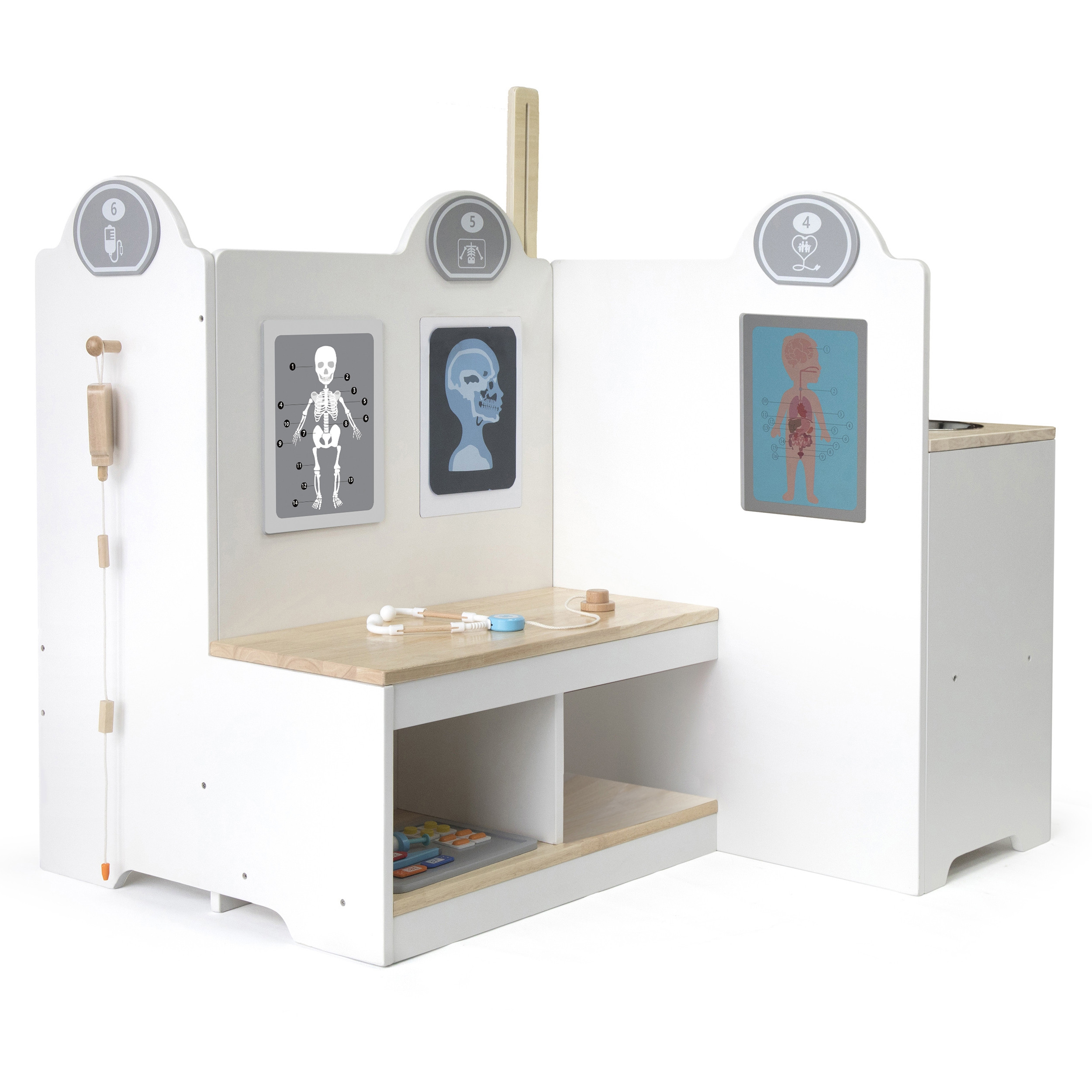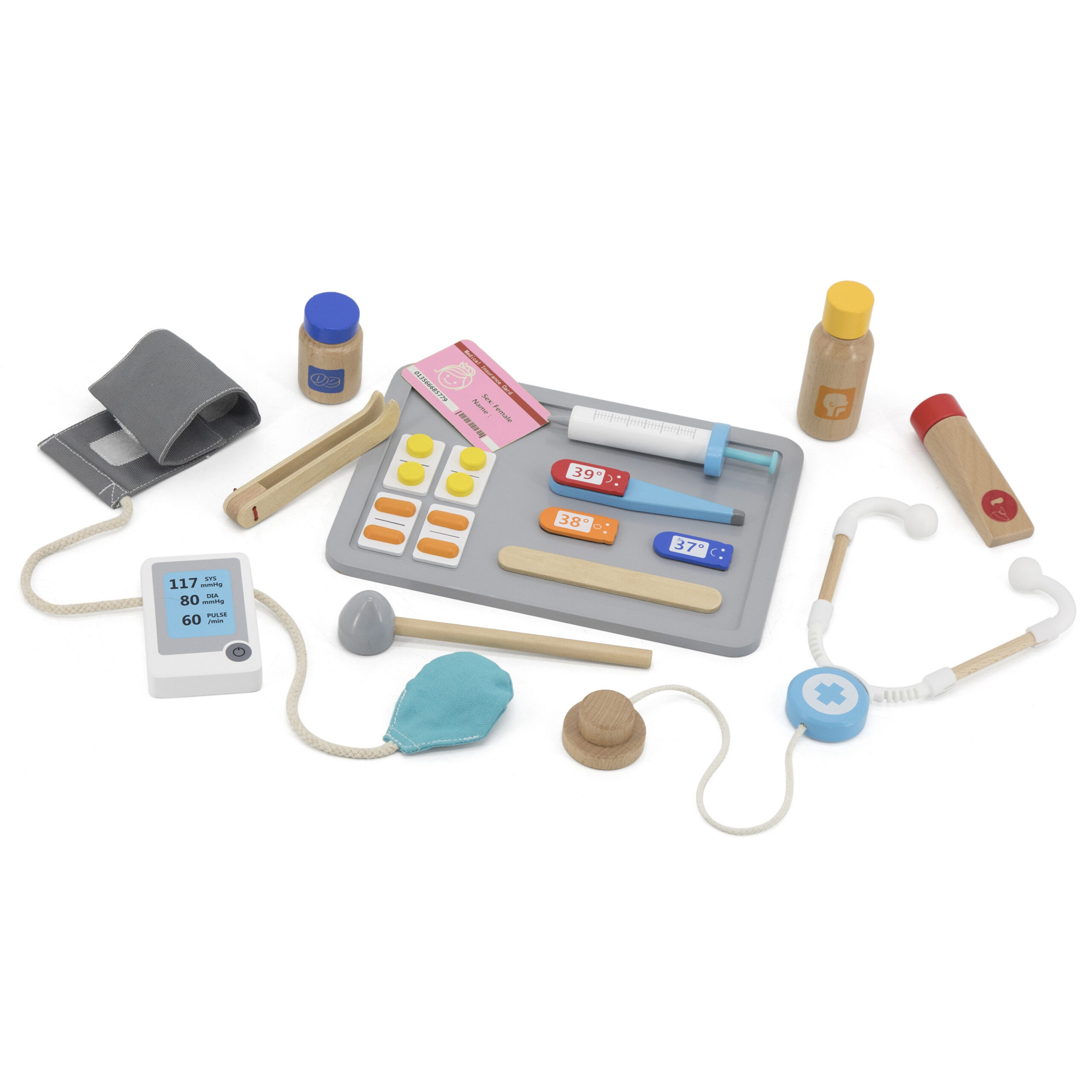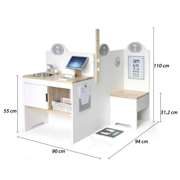 Wielofunkcyjne Centrum Medyczne od znanej i cenionej marki Viga to wspaniała zabawka, która pozwoli Twojemu dziecku poznać bliżej zawód lekarza czy pielęgniarki. Zestaw zawiera gabinet lekarski, poczekalnie, umywalkę i recepcję. Dodatkowo dołączone zostały profesjonalne sprzęty medyczne takie jak: stetoskop, ciśnieniomierz, młotek refleksyjny, termometr, sprzęt do wykonania badań rentgenowskich, strzykawki, tabletki, opakowania na pigułki. Dzięki zabawie możemy bliżej wyjaśnić dziecku na czym polega praca lekarza, możemy odgrywać rolę doktora, pielęgniarki czy pacjenta. Idealny sposób, aby przybliżyć dzieciom przebieg wizyty u lekarza, zwłaszcza tym, które boją się wizyt w gabinecie lekarskim. Świetny produkt dla maluchów, które chcą w przyszłości zostać lekarzami. Zabawka idealna do odgrywania ról, pomaga rozwinąć u dzieci wyobraźnię oraz umiejętności społeczne. Przeznaczona dla dzieci powyżej 3 roku życia.