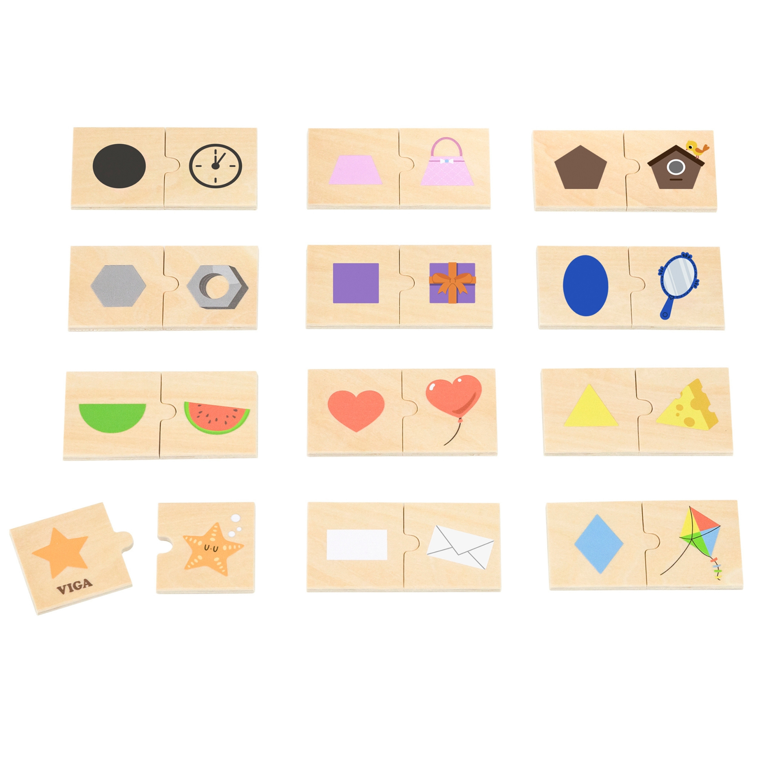 Zestaw puzzli „Dopasuj Cienie” od marki VIGA to idealne połączenie zabawy z edukacją. Te logiczne puzzle to klasyczne układanki, które zachwycą każde dziecko. Dzięki pięknym, barwnym elementom zapewniają nie tylko wciągającą zabawę, ale również wspierają wczesną edukację poprzez zabawę. Kolorowe postacie na puzzlach przyciągną uwagę dzieci, pomagając im w nauce kolorów oraz poznawaniu otaczającego świata, a także w rozwijaniu nowych słów, wierszyków i piosenek. Ta drewniana układanka pomaga dzieciom w nauce rozpoznawania i rozróżniania cieni przedmiotów codziennego użytku.