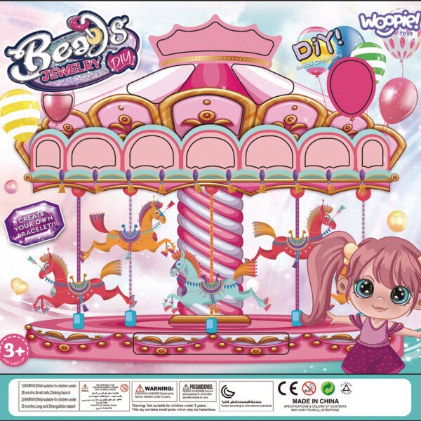 Zestaw do Robienia Biżuterii od marki WOOPIE jest stylowym, kreatywnym i zjawiskowym zestawem dla każdego dziecka. Dziecko samodzielnie może mieszać i dopasowywać różne koraliki oraz zawieszki, aby stworzyć swoją niepowtarzalną bransoletkę, pierścionek lub wisiorek. Zestaw zawiera różnego rodzaju elementy: koraliki różnej wielkości, zawieszki, elementy przypominające zwierzątka, oraz żyłki. Komplet zapakowany jest w kolorowe pudełko przedstawiające karuzele idealnie nadaje się na prezent. Po rozpakowaniu zestaw jest łatwy do przeniesienia- jest lekki i poręczny, co sprawia, że dziecko z łatwością może go zabrać ze sobą do przedszkola, do kolegi, do ogrodu. Opakowanie, również posiada formę organizera, co pozwoli na bezpieczne przechowywanie małych elementów znajdujących się w zestawie. Zabawa w tworzenie biżuterii pozytywnie wpływa na rozwój dziecka, kształtuje jego zdolności plastyczne wraz z rozwojem wyobraźni oraz kreatywności, ćwicząc jednocześnie koncentrację; rozwija zdolności manualne/motoryczne tzw. „małą motorykę” (ruch rączek), a także przy zabawie z przyjaciółmi uczy współpracy, dzielenia się i usprawnia zdolności społeczno-integracyjne.