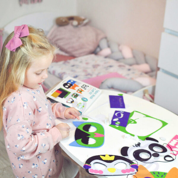 Zestaw Kreatywny Fabryka Masek Party w Lesie od marki WOOPIE z serii ART&FUN dostarczy kreatywnej zabawy samemu lub w gronie przyjaciół! Zestaw zapewnia ciekawą formę zabawy, która dostarczy wiele satysfakcji z tworzenia. Dziecko może stworzyć własną maskę zwierzęcia z lasu. Zestaw pozwala na stworzenie 4 różnych masek. Zestaw zawiera 14 el.: oprócz 4 podstaw masek, dołączone zostały 5 plansze z 75 elementami w 5 różnych kolorach do przystrojenia oraz 4 sznurki, które można łatwo regulować, aby dopasować maskę do głowy dziecka. Łatwe do wykonania – elementy z plansz można łatwo wydzielić oraz wystarczy oderwać papier ze samoprzylepnego spodu i nanieść elementy na maskę – nie wymaga kleju i nożyczek. Maski i elementy zostały wykonane z filcu. Można dowolnie łączyć ze sobą elementy – jedynym ograniczeniem jest wyobraźnia! Z tyłu opakowania zostały przedstawione przykłady wykonania masek. Po stworzeniu masek dziecko wraz z przyjaciółmi może odgrywać Zabawy plastyczne dodatkowo rozwijają zdolności manualne u dzieci tzw. „małą motorykę”. Zestaw jest świetnym pomysłem na zabawę w gronie przyjaciół po stworzeniu masek dzieci mogą odgrywać i wcielać się w różne role!